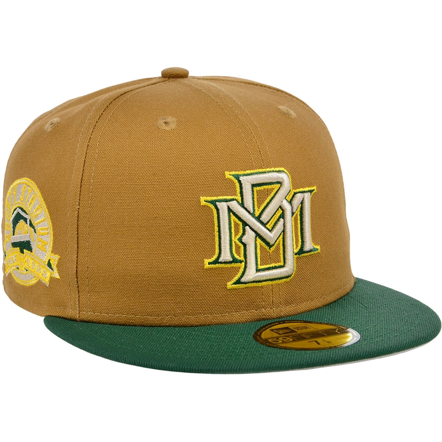 Lids Hat Drop is excited to bring unique and exclusive colorways to your favorite MLB team. This New Era Milwaukee Brewers Desert Pine 59FIFTY fitted hat is a high crown hat structured with a flat rounded bill, threaded rivets, and a team patch to highlight the achievements. Find the look the fits your collection or wardrobe.
