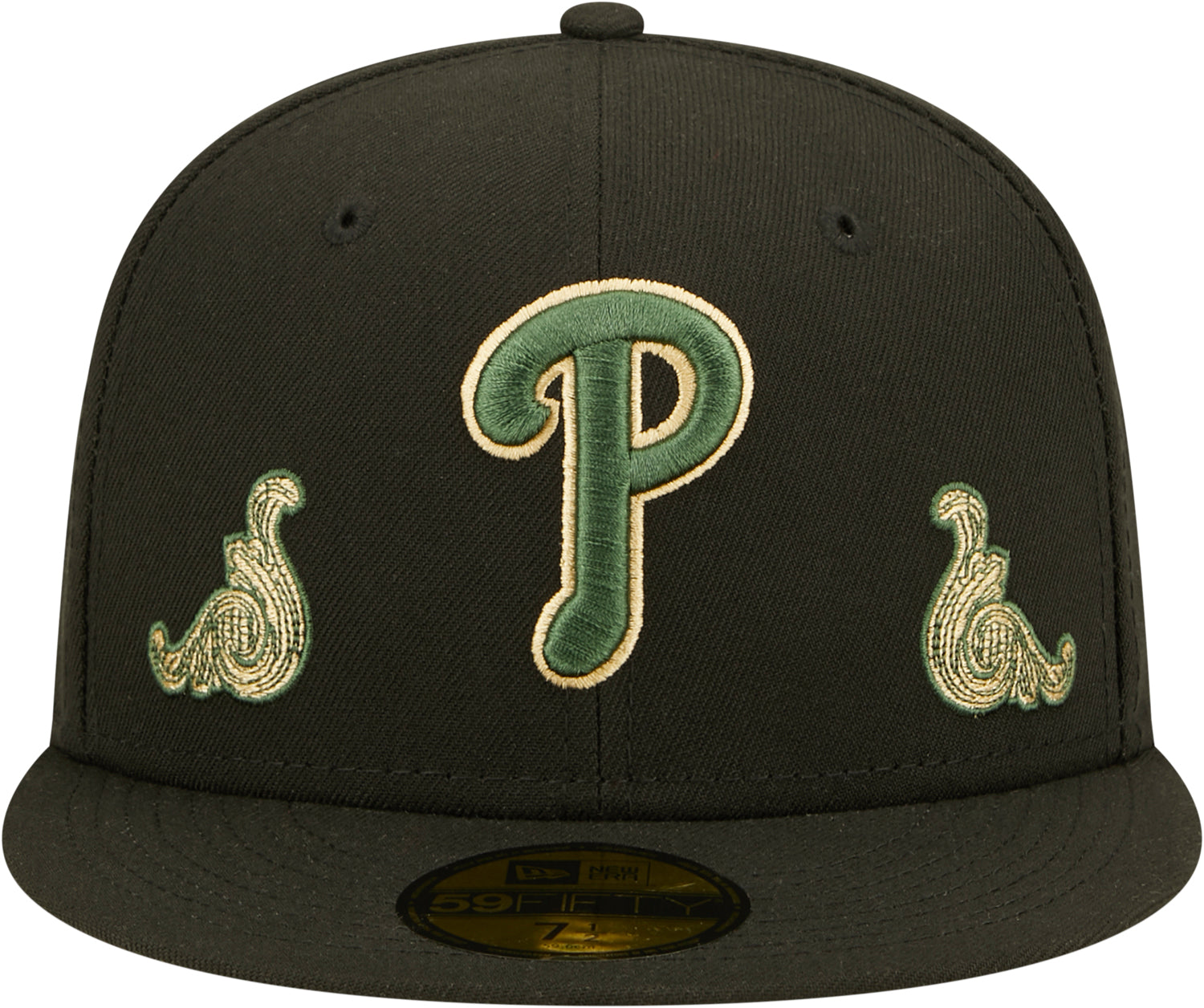 Lids Hat Drop is excited to bring unique and exclusive colorways to your favorite MLB team. This New Era Philadelphia Phillies Cashed Check 59FIFTY is a high crown hat is structured with a flat rounded bill, threaded rivets, and a team patch to highlight the achievements. Find the look the fits your collection or wardrobe.