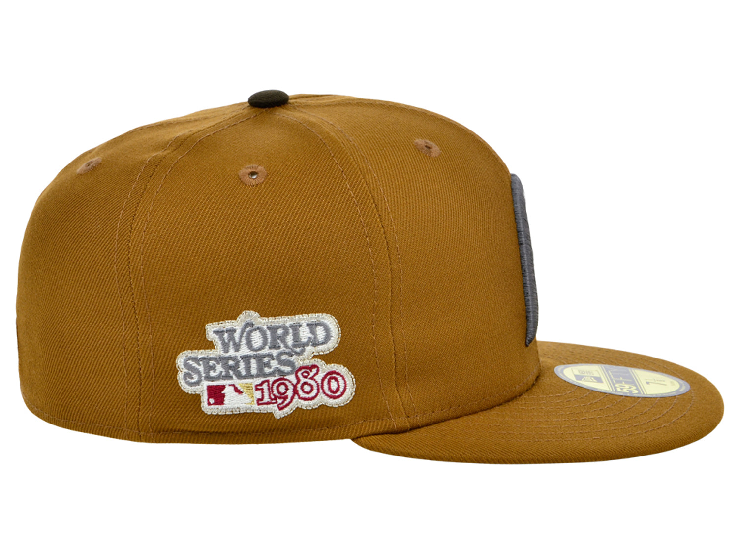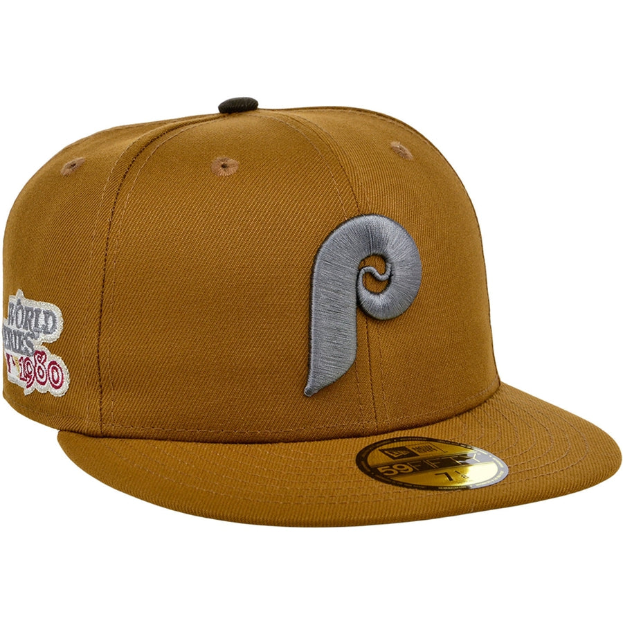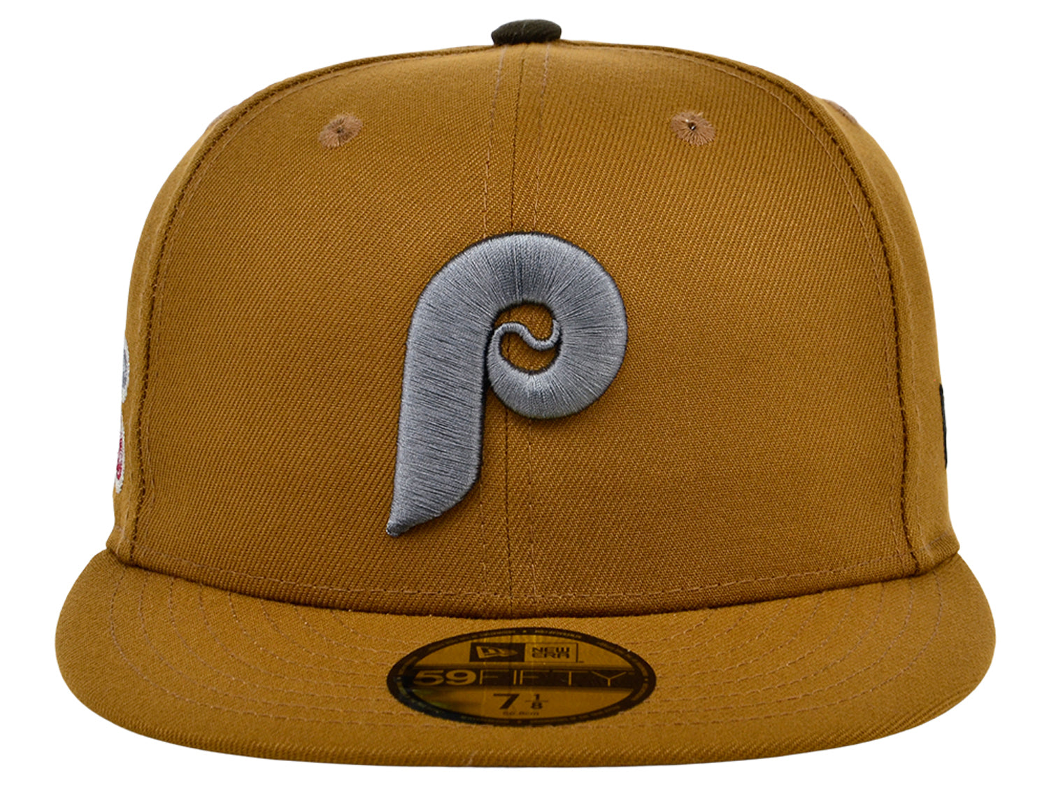 Lids Hat Drop is excited to bring unique and exclusive colorways to your favorite MLB team. This New Era Philadelphia Phillies Cigar 59FIFTY is a high crown hat is structured with a flat rounded bill, threaded rivets, and a team patch to highlight the achievements. Find the look the fits your collection or wardrobe.