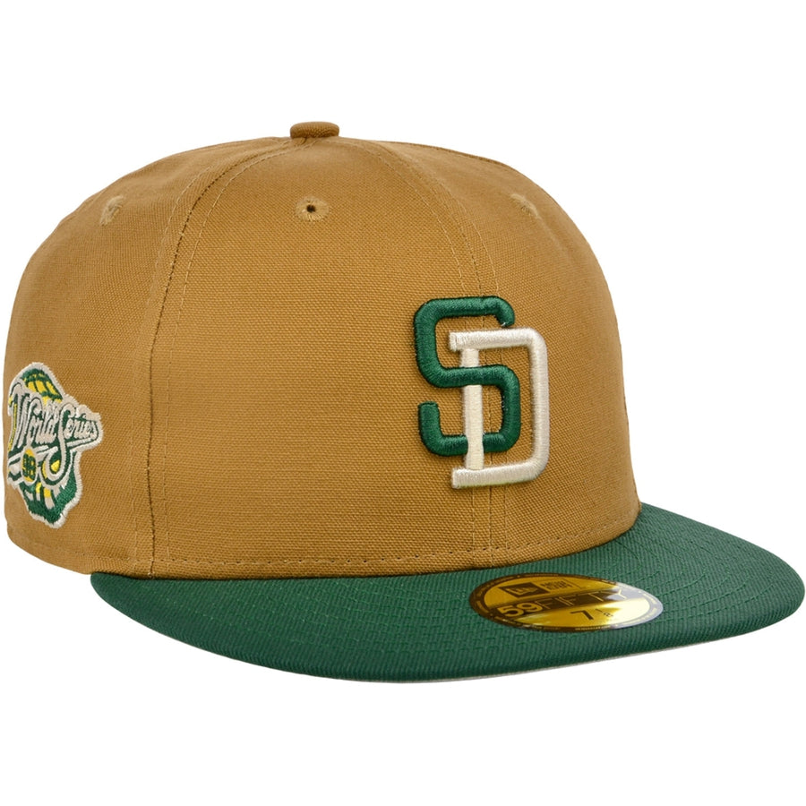 Lids Hat Drop is excited to bring unique and exclusive colorways to your favorite MLB team. This New Era San Diego Padres Desert Pine 59FIFTY fitted hat is a high crown hat structured with a flat rounded bill, threaded rivets, and a team patch to highlight the achievements. Find the look the fits your collection or wardrobe.