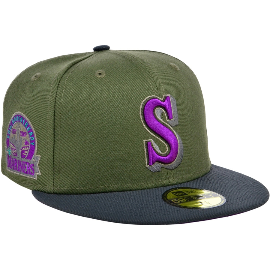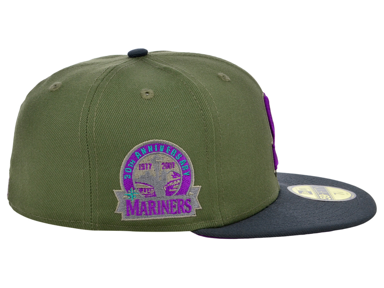 Lids Hat Drop is excited to bring unique and exclusive colorways to your favorite MLB team. This New Era Seattle Mariners Mossy Haze 59FIFTY fitted hat has a high crown, is structured with a flat rounded bill, threaded rivets, and a team patch to highlight the achievements. Find the look the fits your collection or wardrobe.