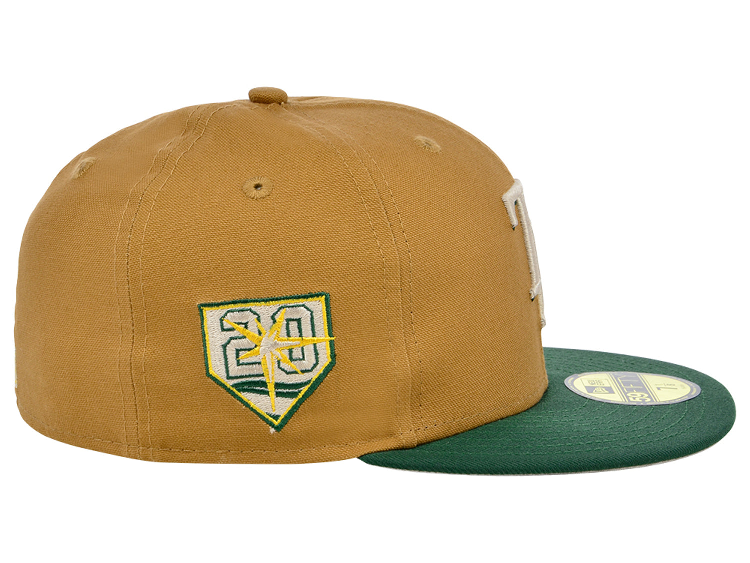 Lids Hat Drop is excited to bring unique and exclusive colorways to your favorite MLB team. This New Era Tampa Bay Rays Desert Pine 59FIFTY fitted hat is a high crown hat structured with a flat rounded bill, threaded rivets, and a team patch to highlight the achievements. Find the look the fits your collection or wardrobe.