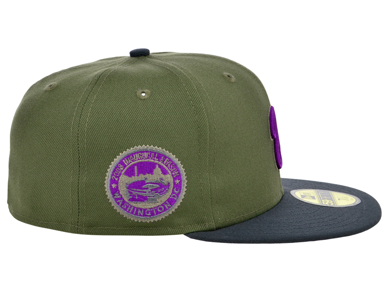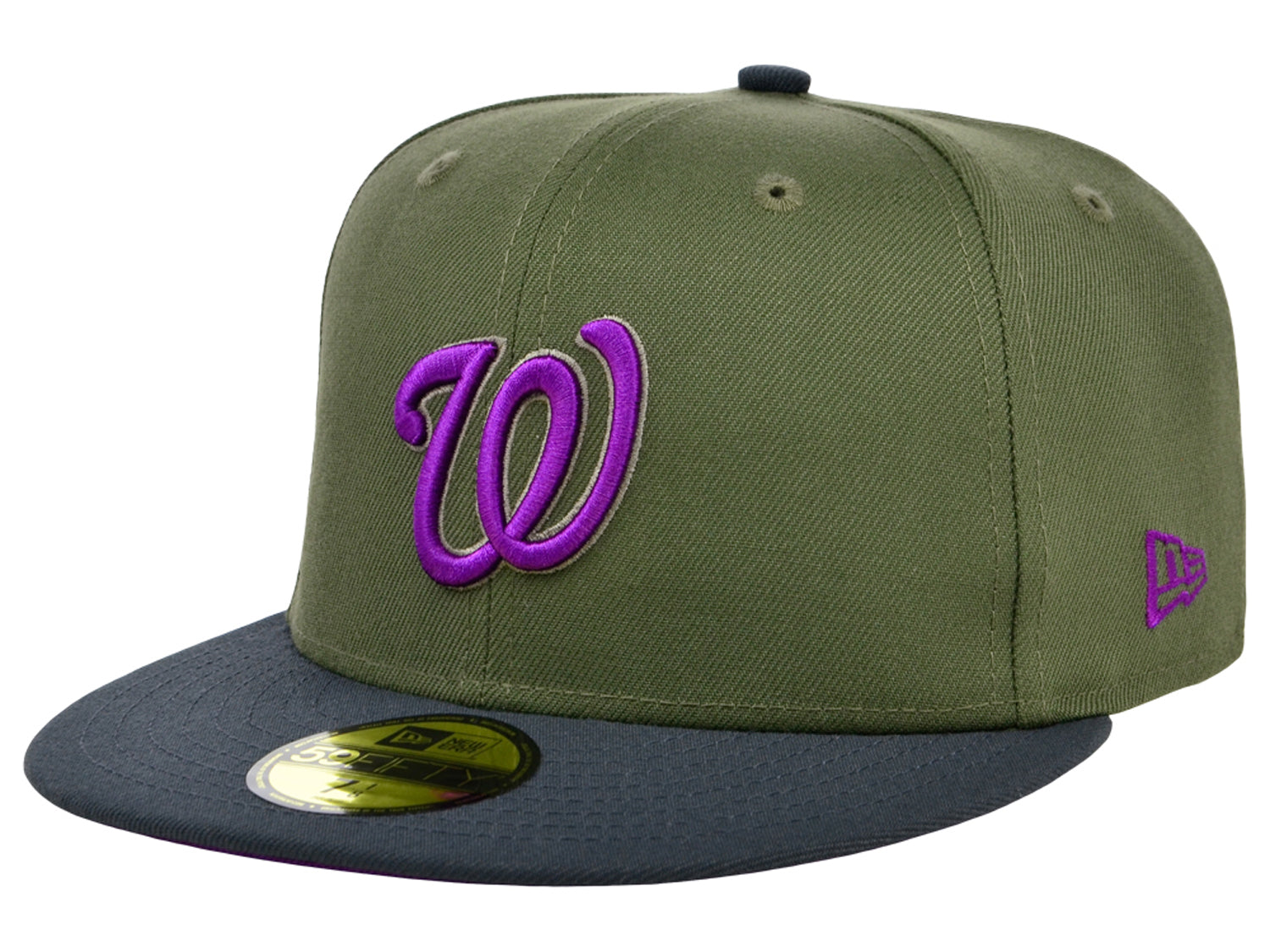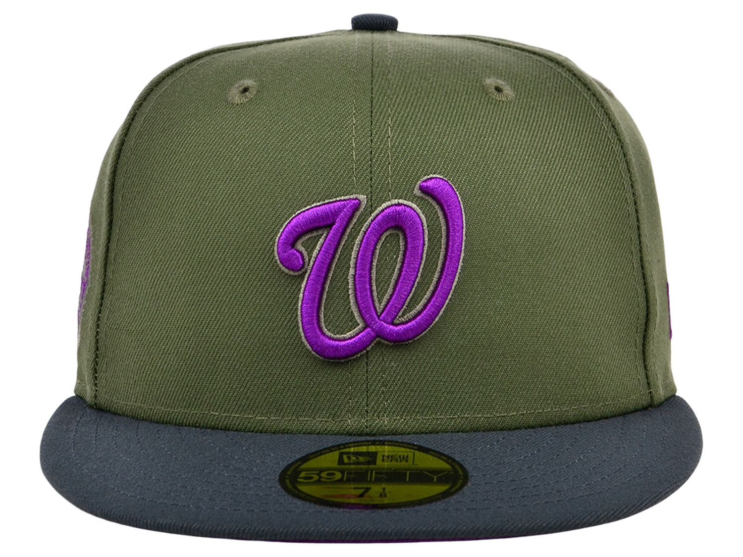 Lids Hat Drop is excited to bring unique and exclusive colorways to your favorite MLB team. This New Era Washington Nationals Mossy Haze 59FIFTY fitted hat has a high crown, is structured with a flat rounded bill, threaded rivets, and a team patch to highlight the achievements. Find the look the fits your collection or wardrobe.