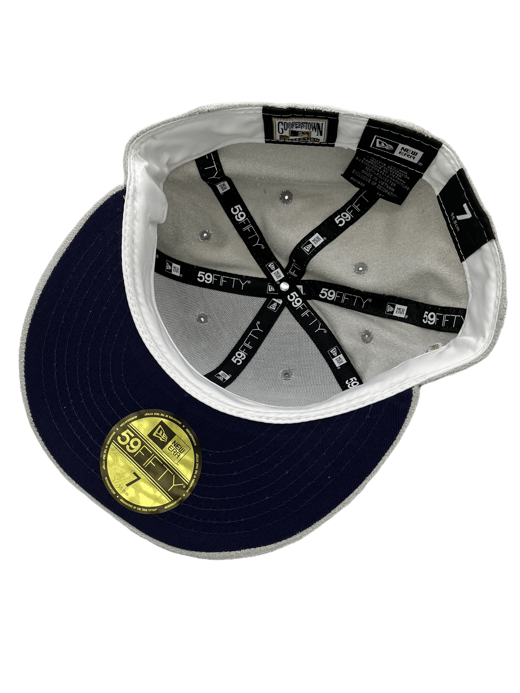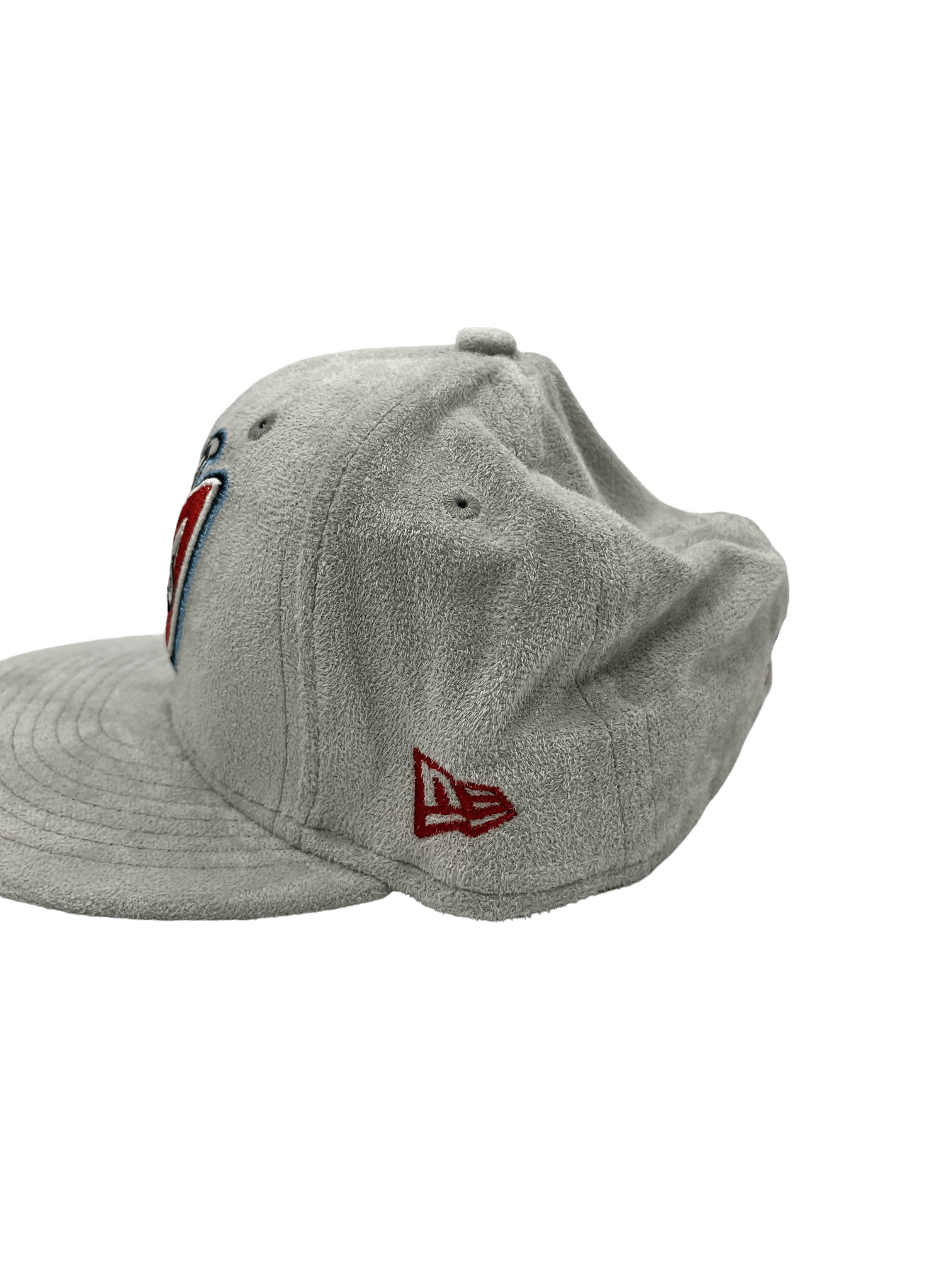 This New Era x Pro Image Sports Anaheim Angels Gray Metallic Suede 59FIFTY Fitted Hat is an exclusive release by Pro Image Sports. The fitted has a gray metallic suede six panel structured high crown, eyelets and squatchee button. The flat bill of the fitted cap is also gray metallic suede with a navy blue undervisor and white sweatband. The front panel features the Anaheim Angels logo embroidery