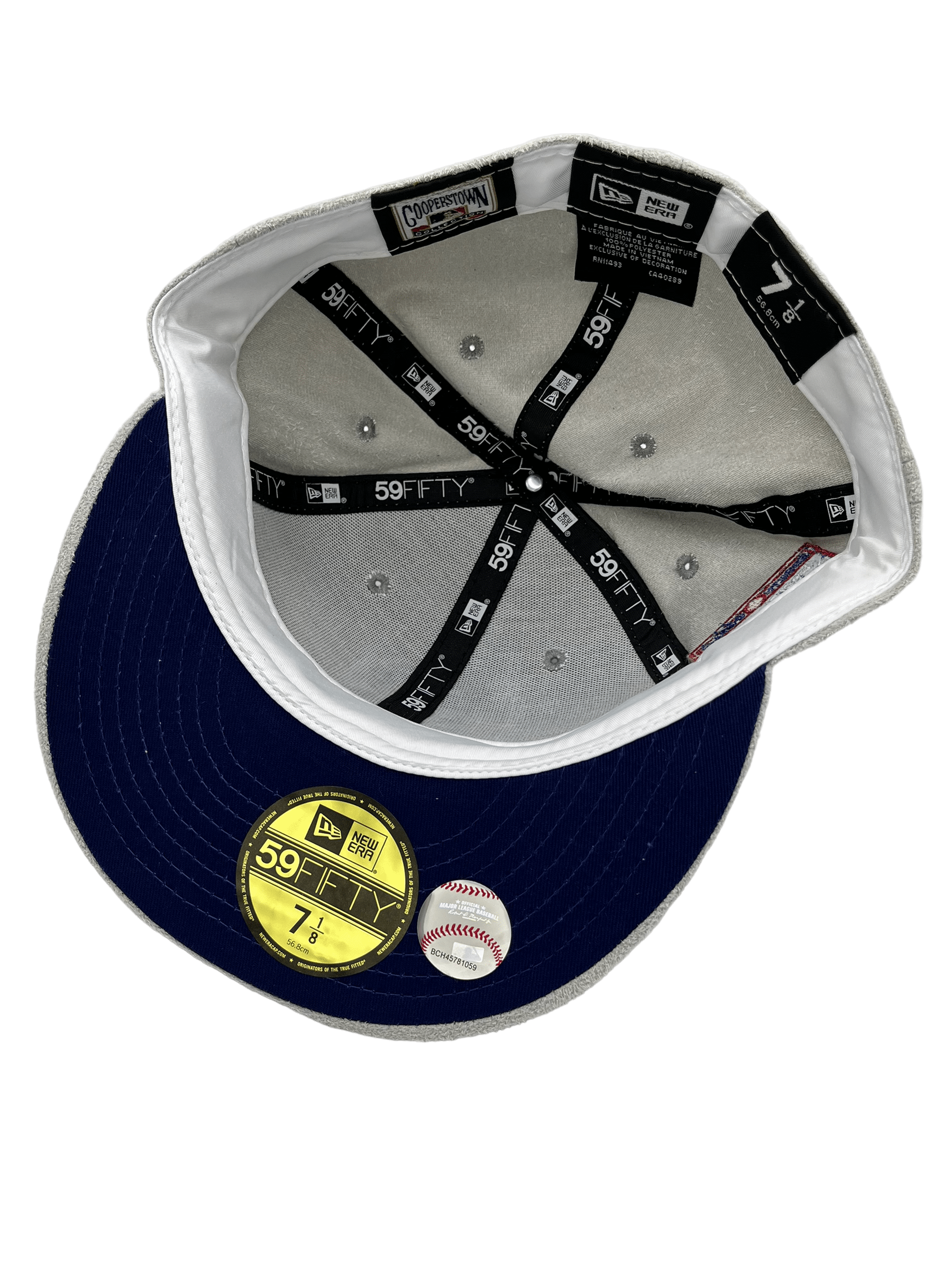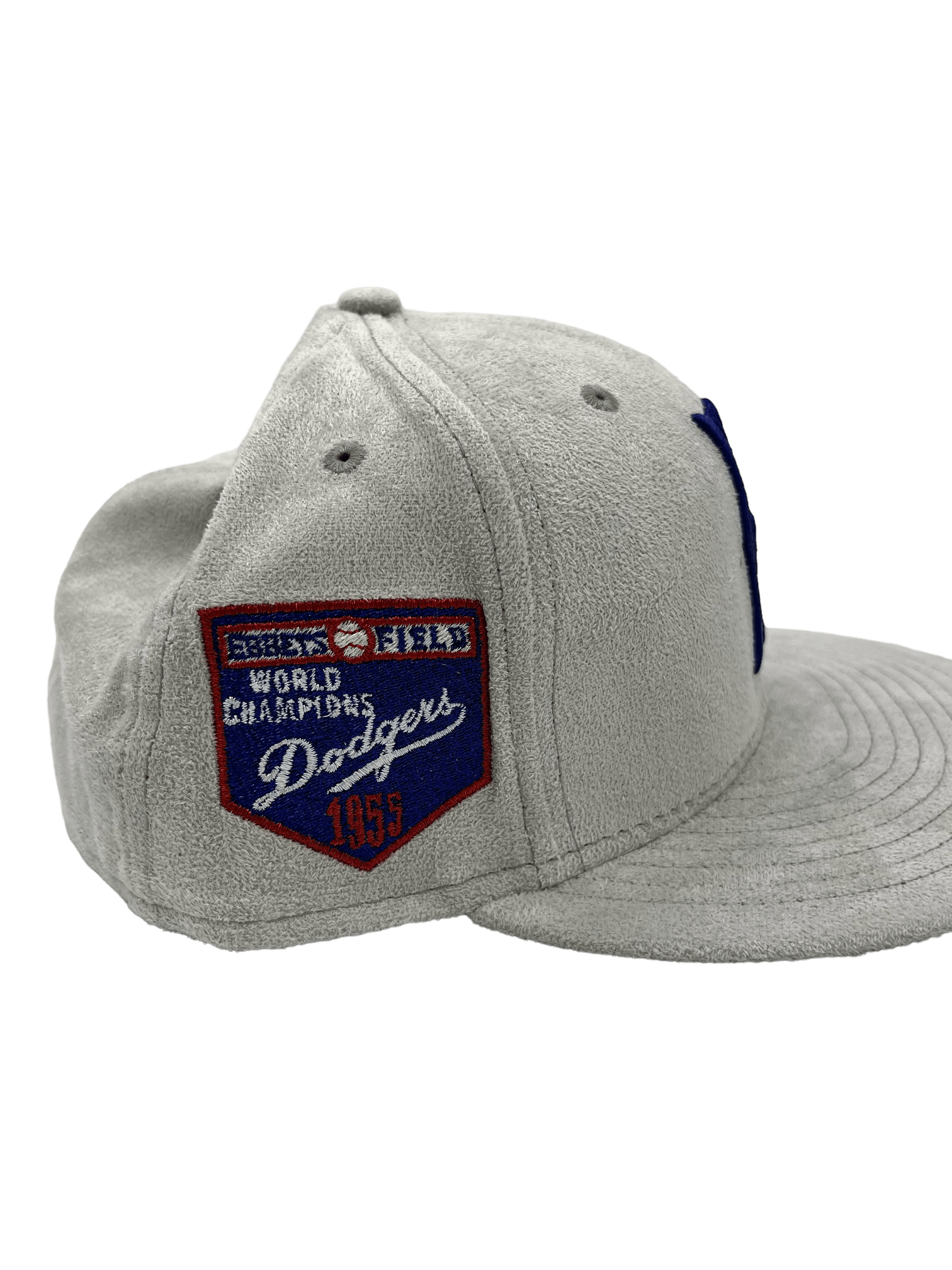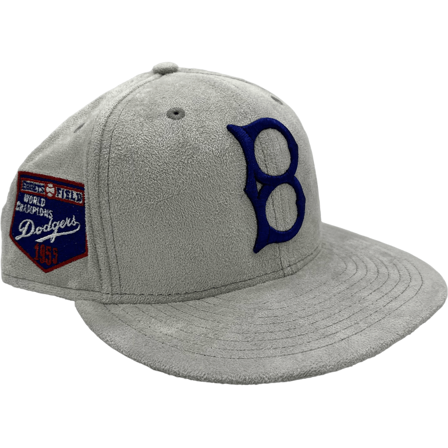 This New Era x Pro Image Sports Brooklyn Dodgers Gray Metallic Suede 59FIFTY Fitted Hat is an exclusive release by Pro Image Sports. The fitted has a gray metallic suede six panel structured high crown, eyelets and squatchee button. The flat bill of the fitted cap is also gray metallic suede with a navy blue undervisor and white sweatband. The front panel features the Brooklyn Dodgers logo embroidery