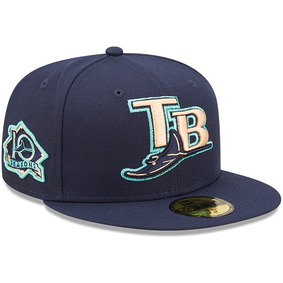 Lids Hat Drop is excited to bring unique and exclusive colorways to your favorite MLB team. This New Era Tampa Bay Rays 59FIFTY is a high crown hat is structured with a flat rounded bill, threaded rivets, and a team patch to highlight the achievements. Find the look that fits your collection or wardrobe.