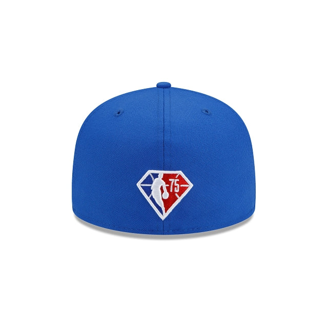 The push for the playoffs starts with this year's NBA Back Half Collection. The Dallas Mavericks Back Half 59FIFTY Fitted Cap features an embroidered Mavericks logo at the front panels with team and league specific embroidered artwork at the right-wear side extending to the front panels, and the NBA 75th anniversary logo embroidered at the rear.