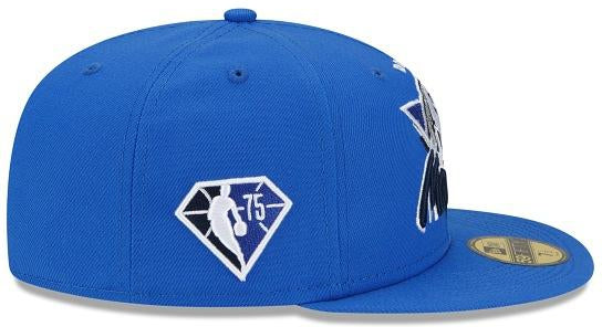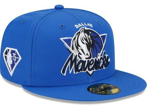 Fresh look for a fresh start. The Dallas Mavericks Tip Off 59FIFTY Fitted Cap features a custom Mavericks mark inspired by logos and wordmarks embroidered at the front panels with the Official NBA 75th anniversary logo embroidered at the right-wear side. Additional details include a team logo at the rear with a gray undervisor.