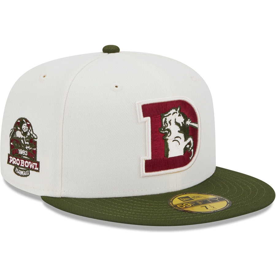 Browse a large selection of Denver Broncos fitted hats. Check out multiple vendors selling the latest, officially NFL licensed, 59FIFTY New Era Denver Broncos fitted caps with various colorways, undervisors and embroidered side patches including Pro Bowl & Super Bowl. Some of the football caps in this collection will have been archived for record keeping purposes. The further down you scroll the more likely you will run into fitteds that are no longer being sold.