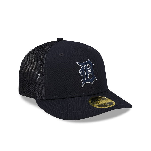 The Detroit Tigers 2023 Batting Practice Low Profile 59FIFTY Fitted Cap features an embroidered Tigers logo at the front panels with a matching MLB Batterman logo at the rear and a gray undervisor.