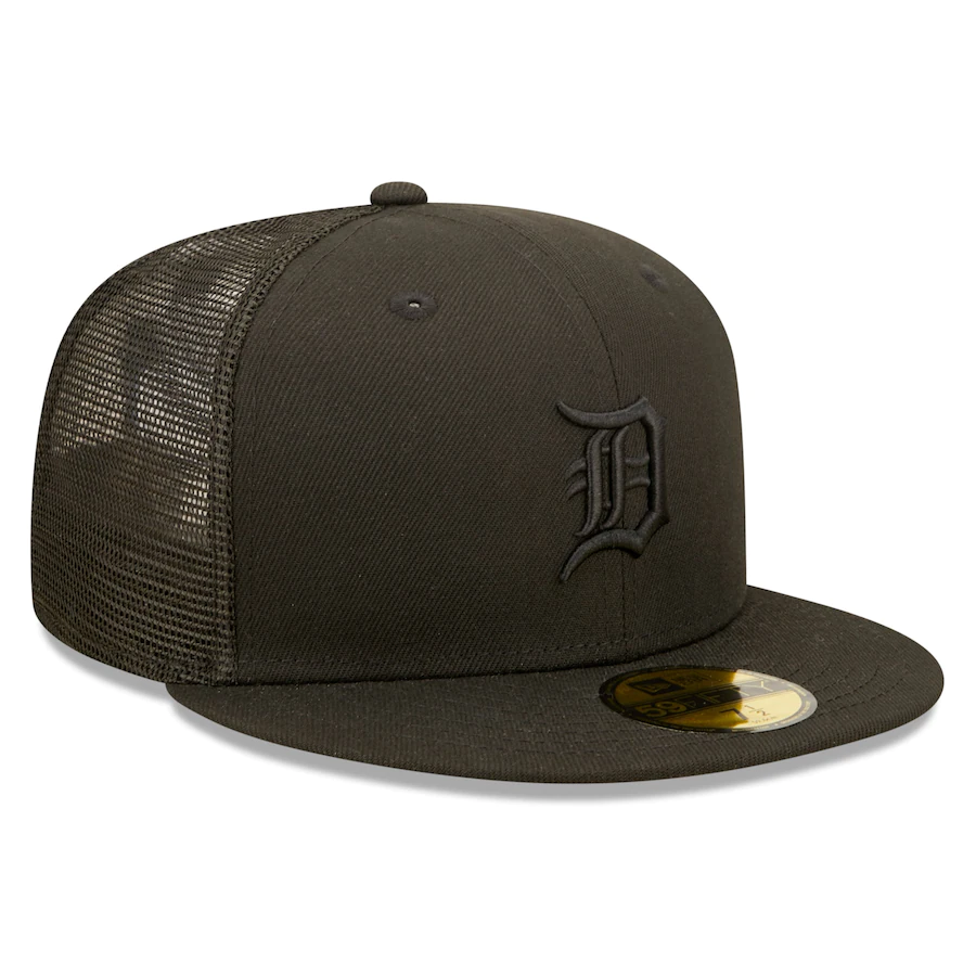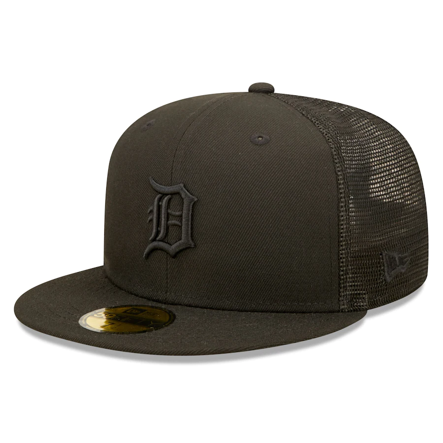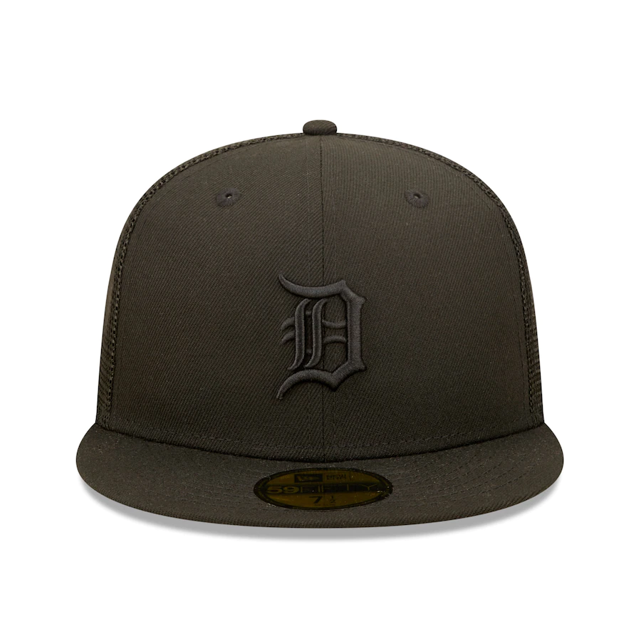 Flip the switch on your Detroit Tigers fandom to dark mode with this New Era Trucker 59FIFTY fitted hat. It features a monochrome blackout design with sleek Detroit Tigers embroidery on the front panels for a timeless look. Additionally, the mesh panels promote a breezy feel.