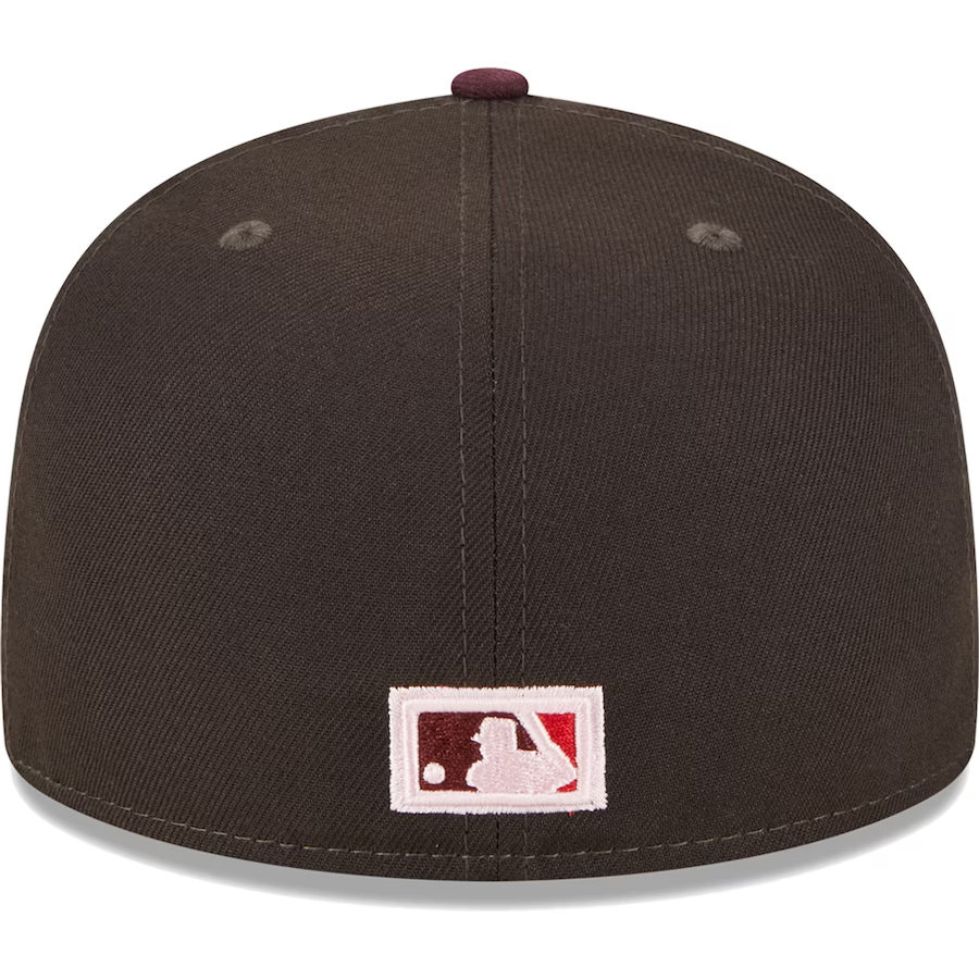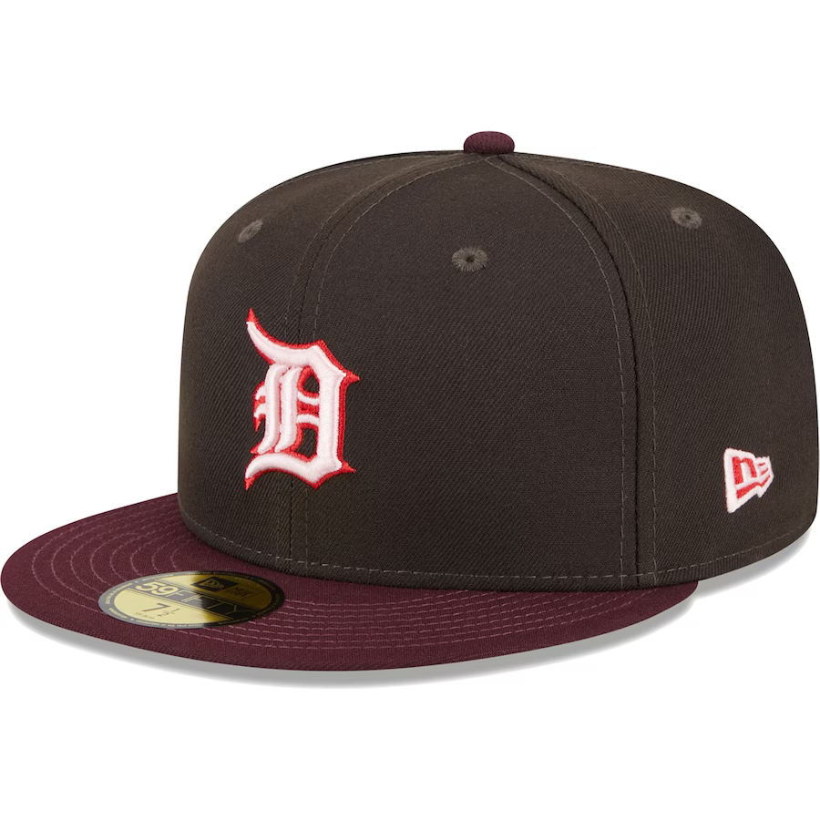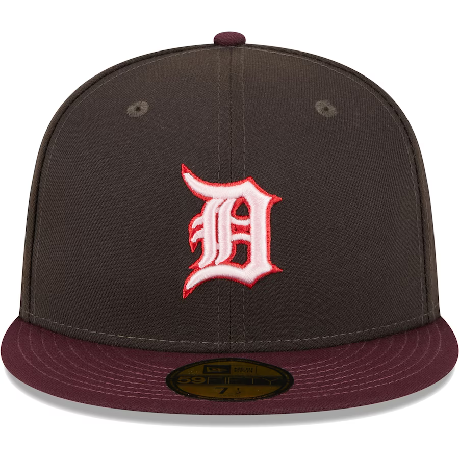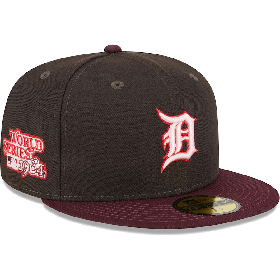 Upgrade your collection of Detroit Tigers gear with this tasteful addition – the Chocolate Strawberry 59FIFTY hat from New Era. This hat boasts the team's logo embroidered on the front and features a celebratory patch on the right side. Its fitted design ensures a perfect fit, while the red undervisor adds a pop of color, giving it a unique and eye-catching look. Perfect for game day outfits, this hat is a must-have accessory for any fan.