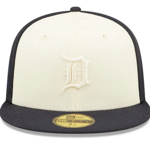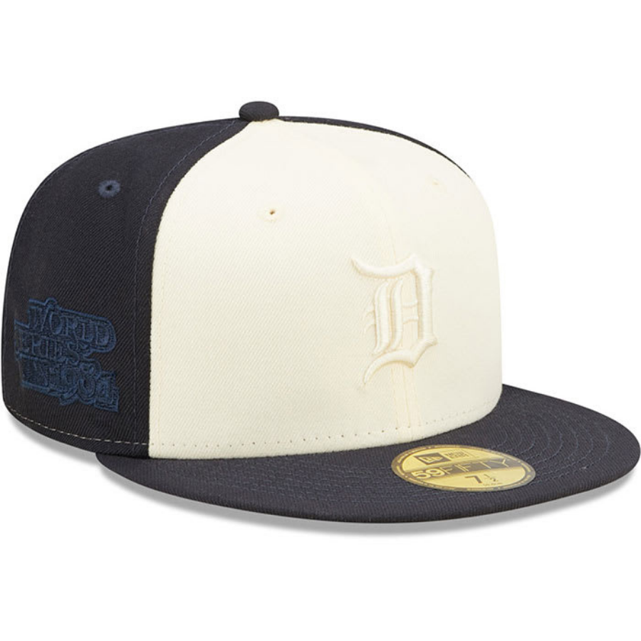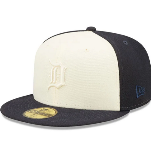This New Era Detroit Tigers 2 Tone fitted hat features navy blue six panel structured high crown a side patch embroidery and grey undervisor with a black sweatband.