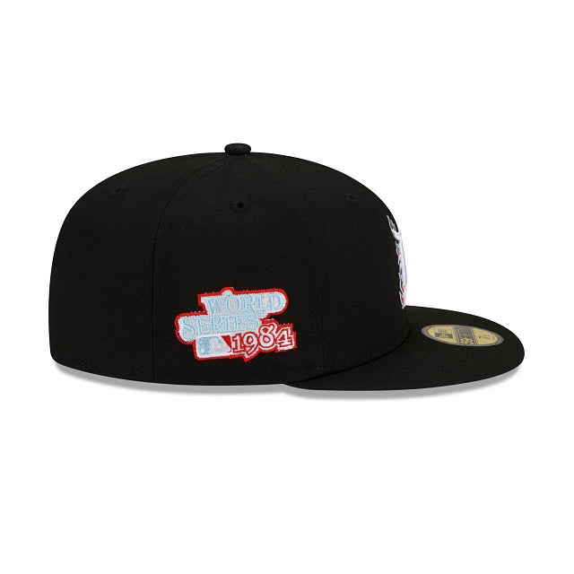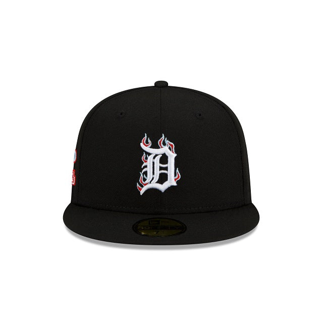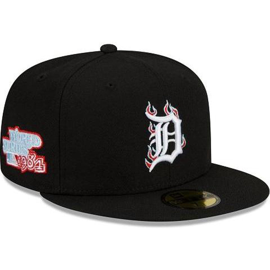 Light it up with the Detroit Tigers Team Fire 59FIFTY Fitted Cap featuring an embroidered Tigers logo with flame detailing at the front panels with a World Series patch at the right-wear side and a light-blue undervisor.