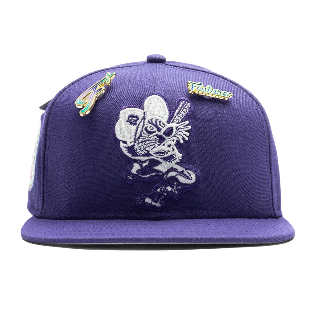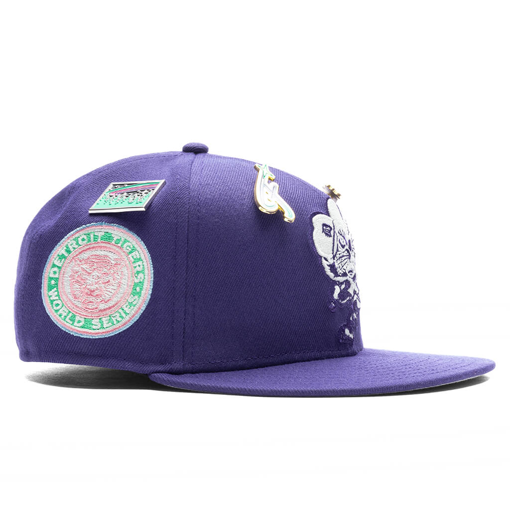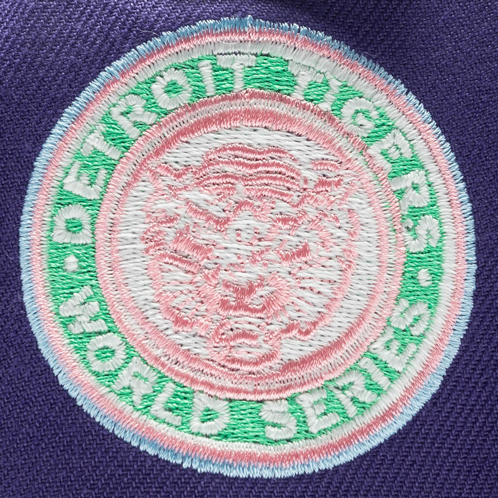 This New Era x Feature Detroit Tigers Northern Lights 59FIFTY Fitted Hat was released by Feature. The Northern Lights fitted has a light navy blue six panel structured high crown, grey embroidered eyelets and light navy blue flat bill. The fitted cap has a grey bottom undervisor with a black sweatband . The front panel features the Detroit Tigers logo embroidery and a side patch embroidered on the right panel. The left panel of the fitted displays the New Era logo and the official MLB logo embroidery on the rear crown.
