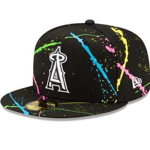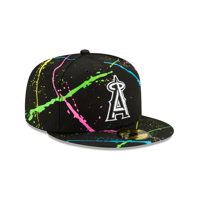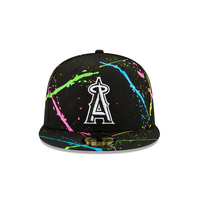 Light up the night with the Los Angeles Angels Streakpop 59FIFTY Fitted Cap featuring an embroidered team logo at the front panels with a neon splatter detailing throughout the crown and a MLB Batterman logo at the rear. Additional details include a gray undervisor.