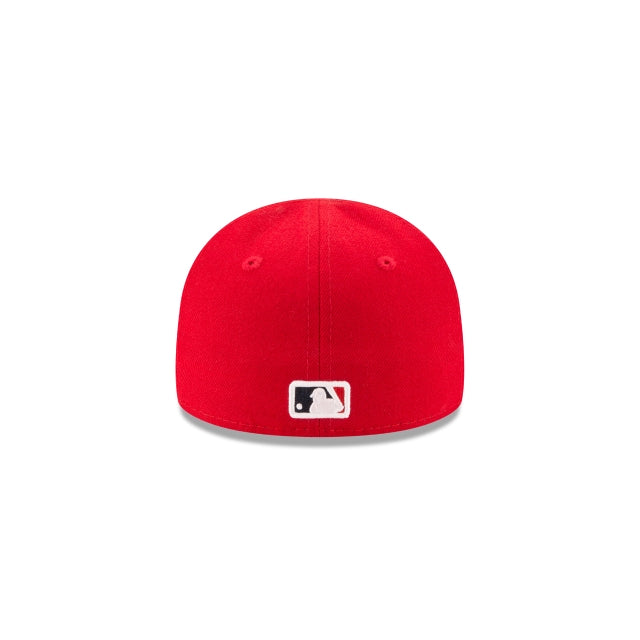 This New Era Los Angeles Angels of Anaheim Toddler 59FIFTY Fitted Hat was made to fit the headsize of toddlers. The fitted has a four