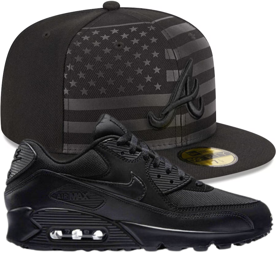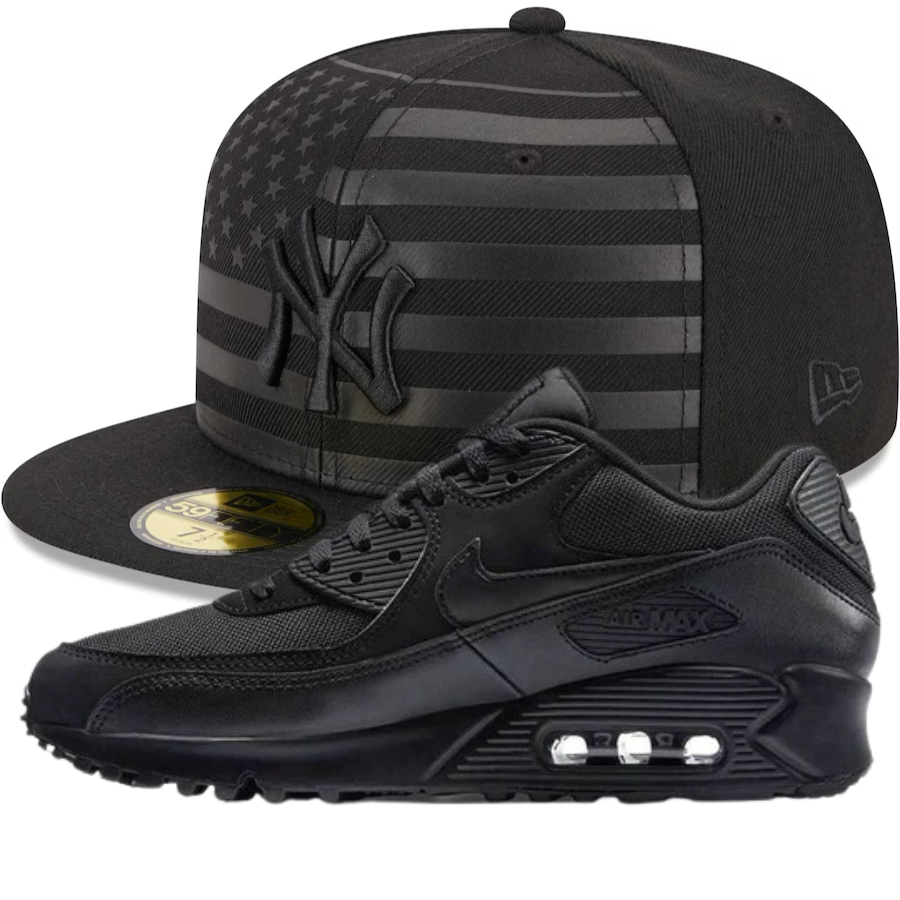 New Era Black on Black Flag Fitted Hat w/ Nike Air Max 90 Triple Black