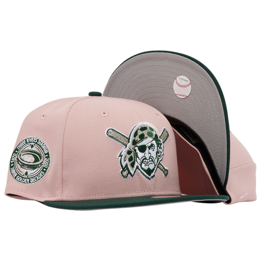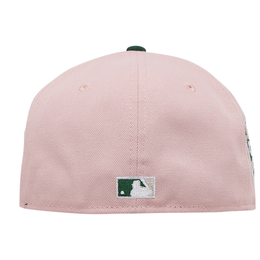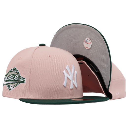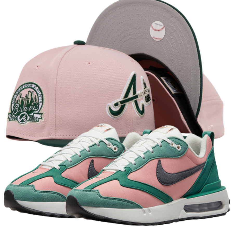 The blush collection fitted hats was released by Champs Sports. The fitteds have a blush pink six panel structured high crown and embroidered eyelets with a dark green fabric squatchee button, flat bill and front panel logo with a grey undervisor. These fitteds matches the Nike Air Max Dawn Rust Pink Jade Glade sneakers for women. The intensity of pink on the sneakers is slightly different from the blush pink of the cap.