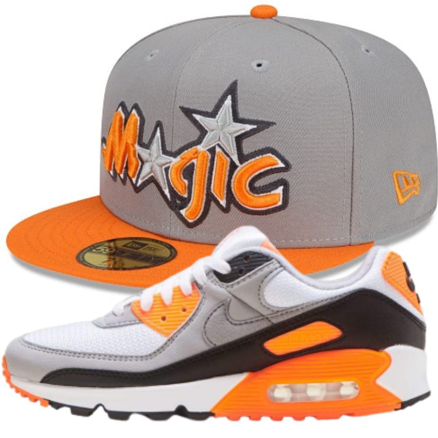 New Era Orlando Magic City Edition Gray Fitted Hat w/ Nike Air Max 90 Total Orange