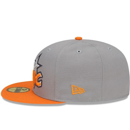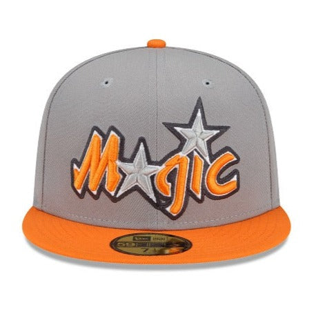 There's no limit in this city. The Orlando Magic City Edition Gray 59FIFTY Fitted Cap features an embroidered Magic wordmark at the front panels, a team logo at the right-wear side, and a matching Official NBA 75th Anniversary logo at the rear.