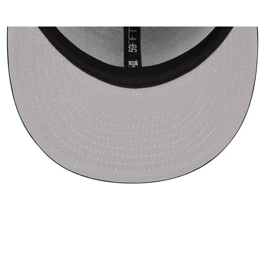 The Spice Berry 59FIFTY Fitted Cap features an embroidered logo at the front panels with a matching MLB Batterman logo at the rear. Additional details include a themed patch at the right-wear side and a gray undervisor.