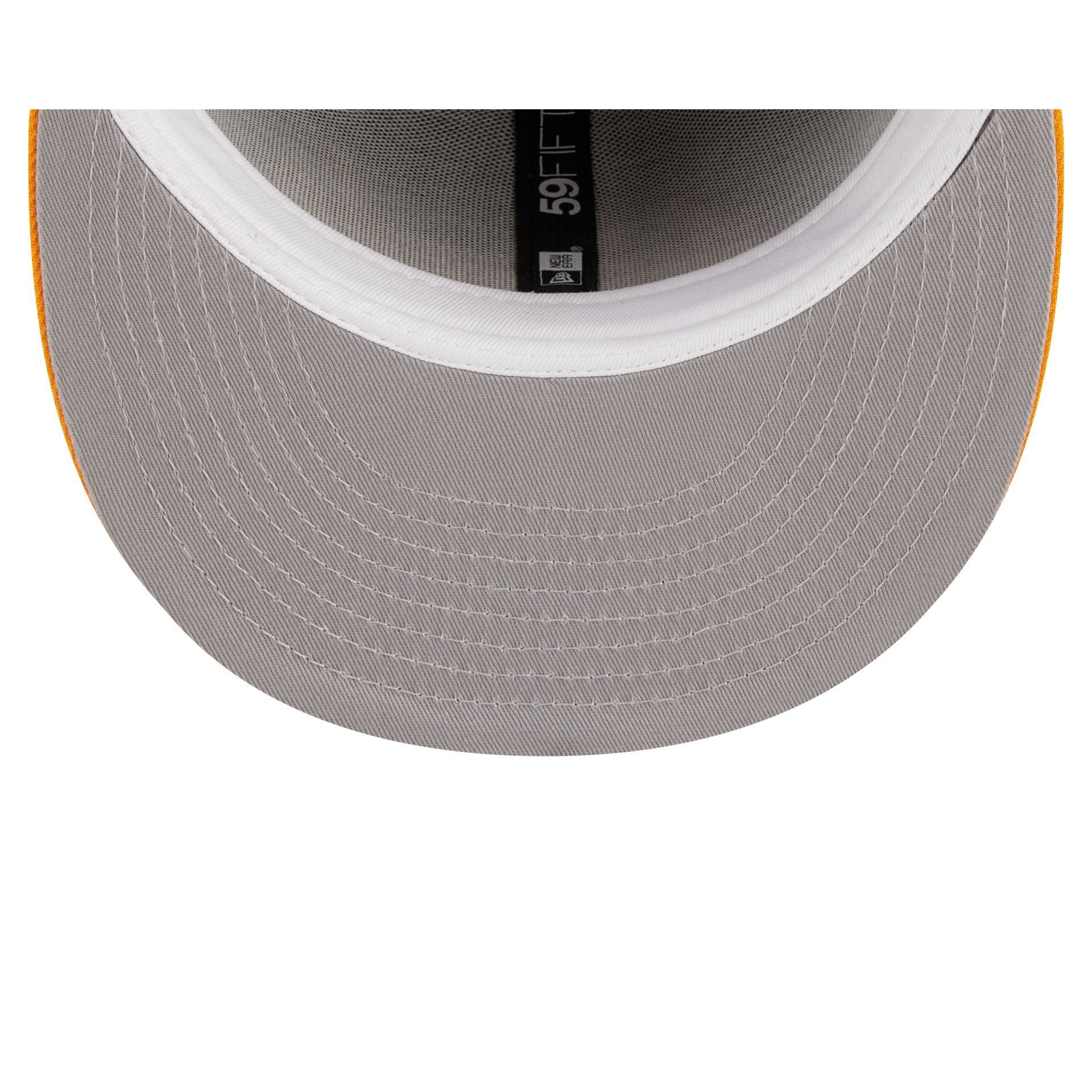 The Tiramisu 59FIFTY Fitted Cap collection features an embroidered MLB team logo at the front panels with a matching MLB Batterman logo at the rear. Additional details include a side patch at the right-wear side and a gray undervisor.