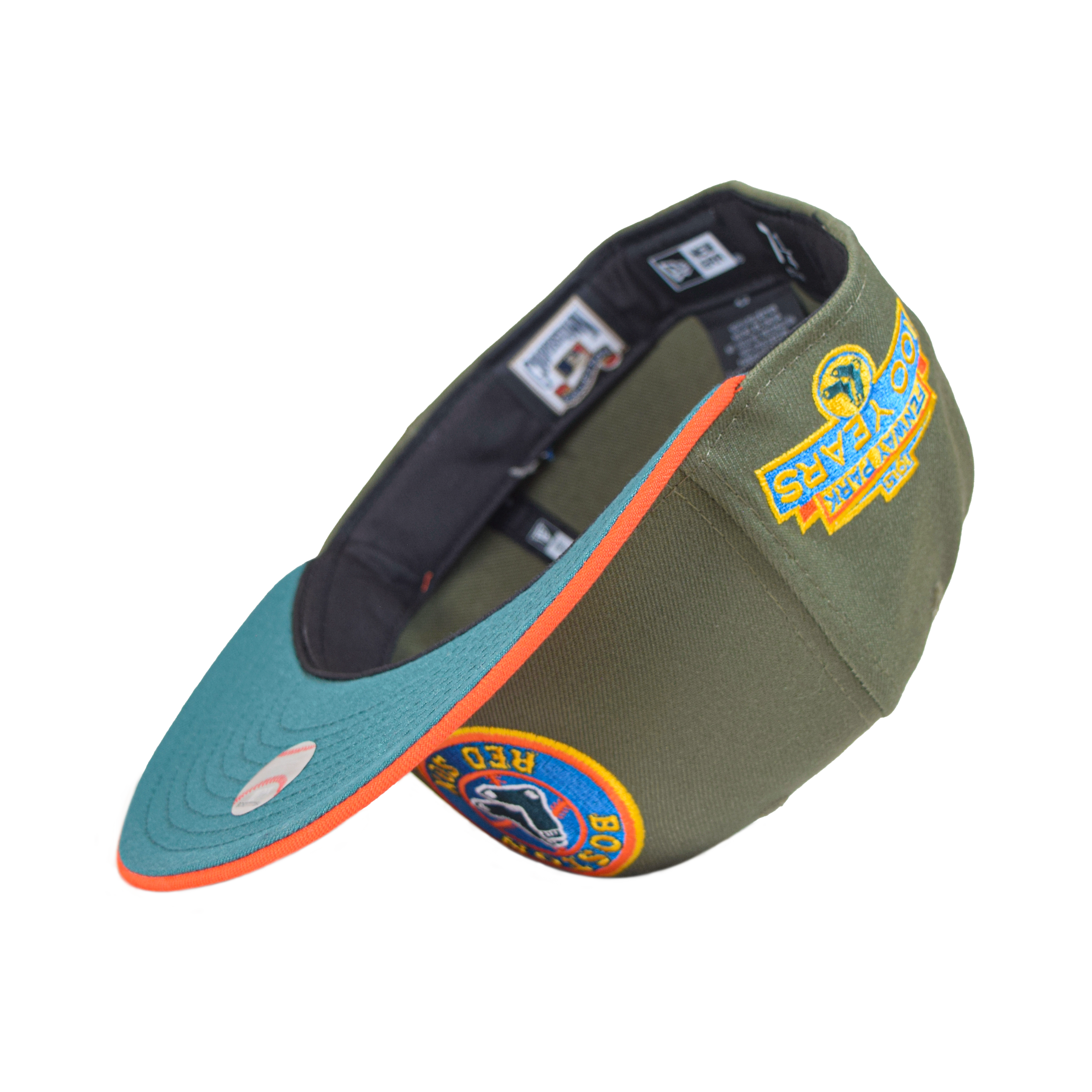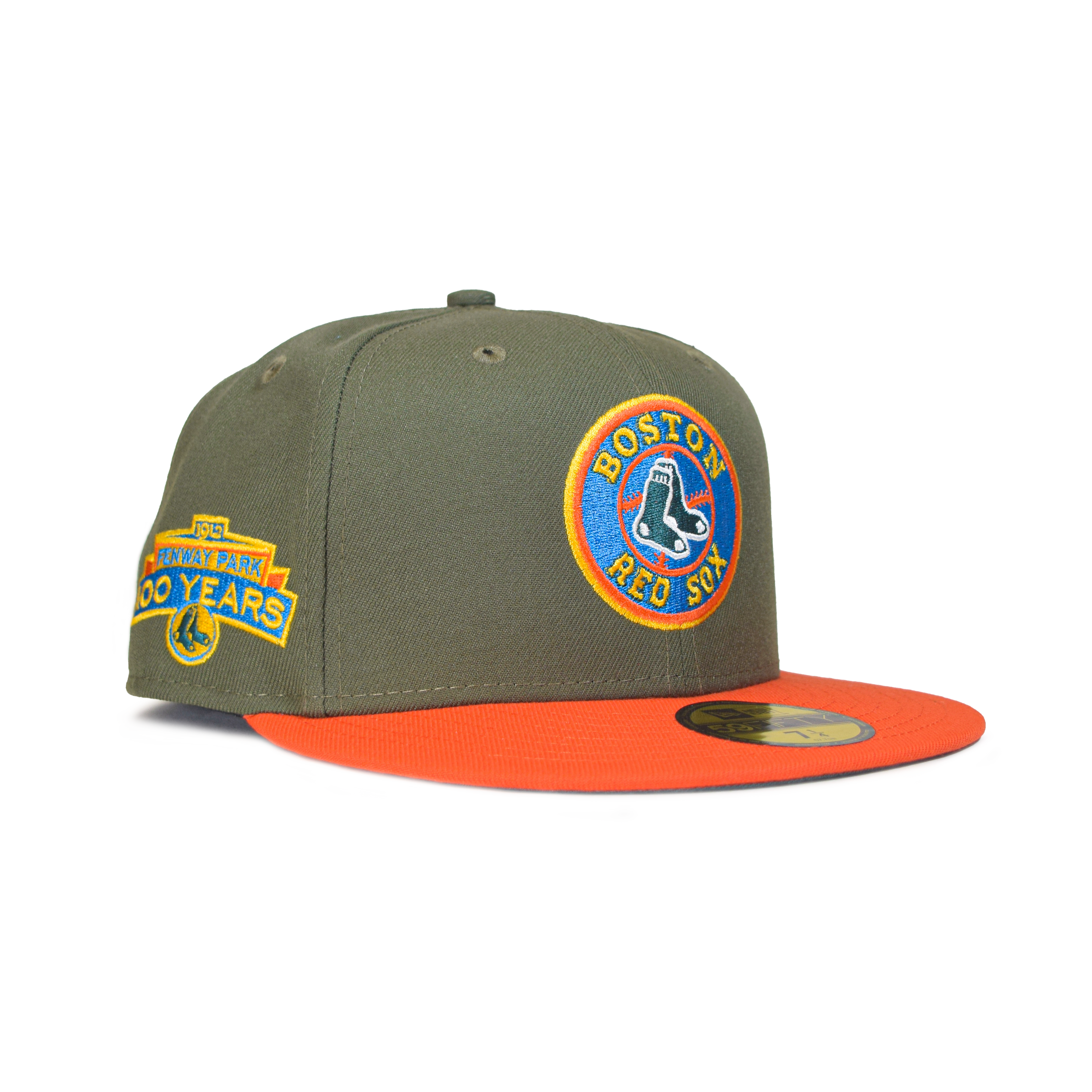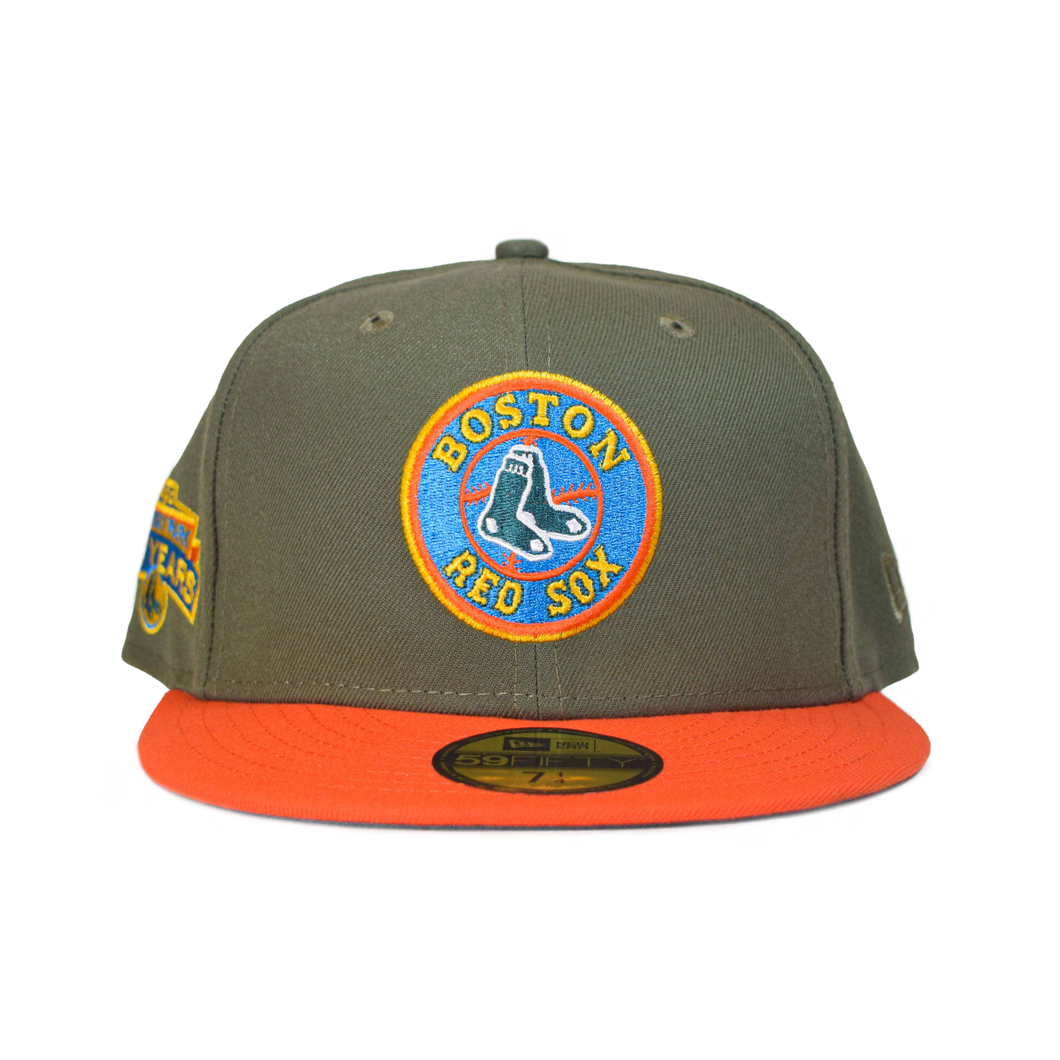 This New Era New Era Boston Red Sox "Mystic Pines" 59FIFTY Fitted Hat was released by Capanova.The Mystic Pine collection features a pine green, olive green, blue and orange colorway. The fitted caps include a six panel construction, fabric squatchee button, embroidered eyelets and a flat brim. The front panel includes the Boston Red Sox logo embroidery and a side patch on the right-wear side.