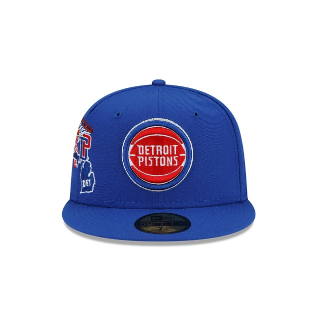 Get the foam finger ready. The Detroit Pistons Fan Out 59FIFTY Fitted Cap features an embroidered Pistons logo at the front panels, a city inspired graphic embroidered at the front right-wear side and the NBA logo embroidered at the rear.