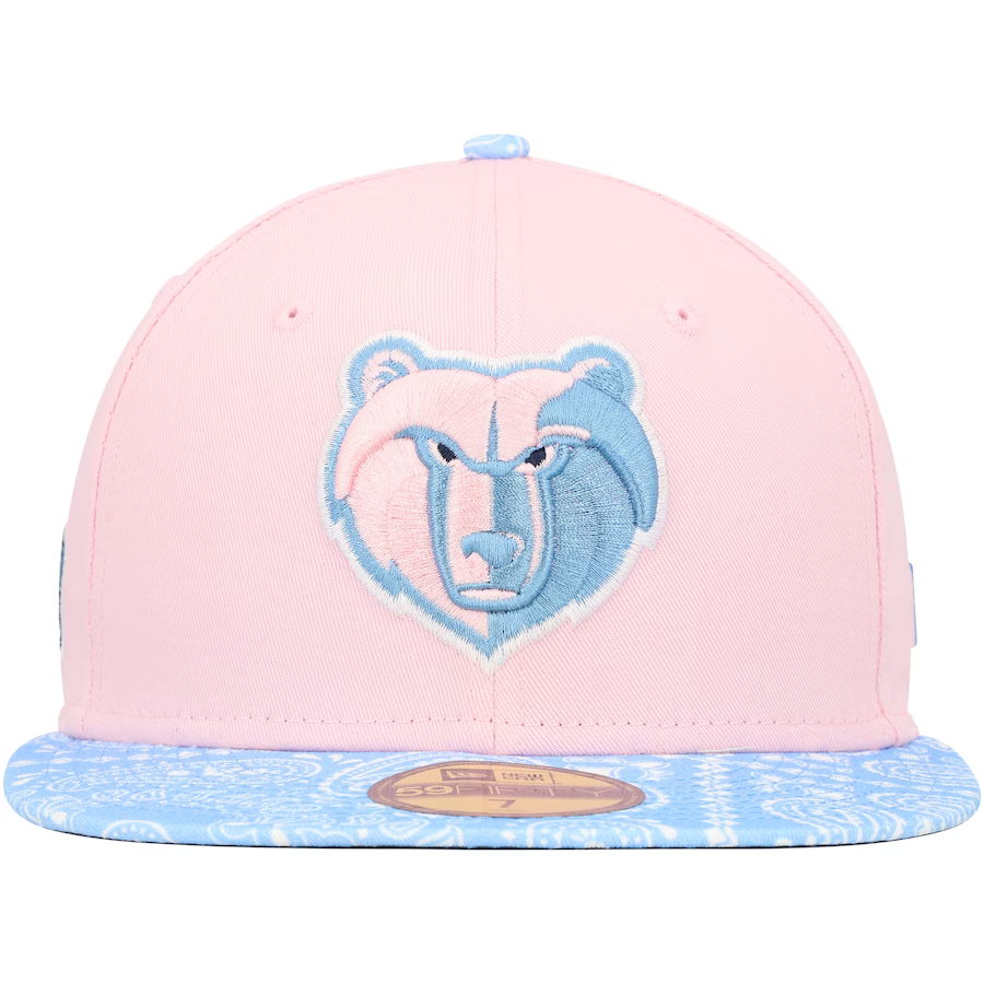 This New Era Memphis Grizzlies 59FIFTY hat is the perfect accessory to upgrade any outfit. With its light blue team graphics and matching paisley pattern on the visor, this hat adds a touch of style to your look. The light blue crown and contrast undervisor also provide a subtle yet eye-catching detail to this fitted Memphis Grizzlies hat.