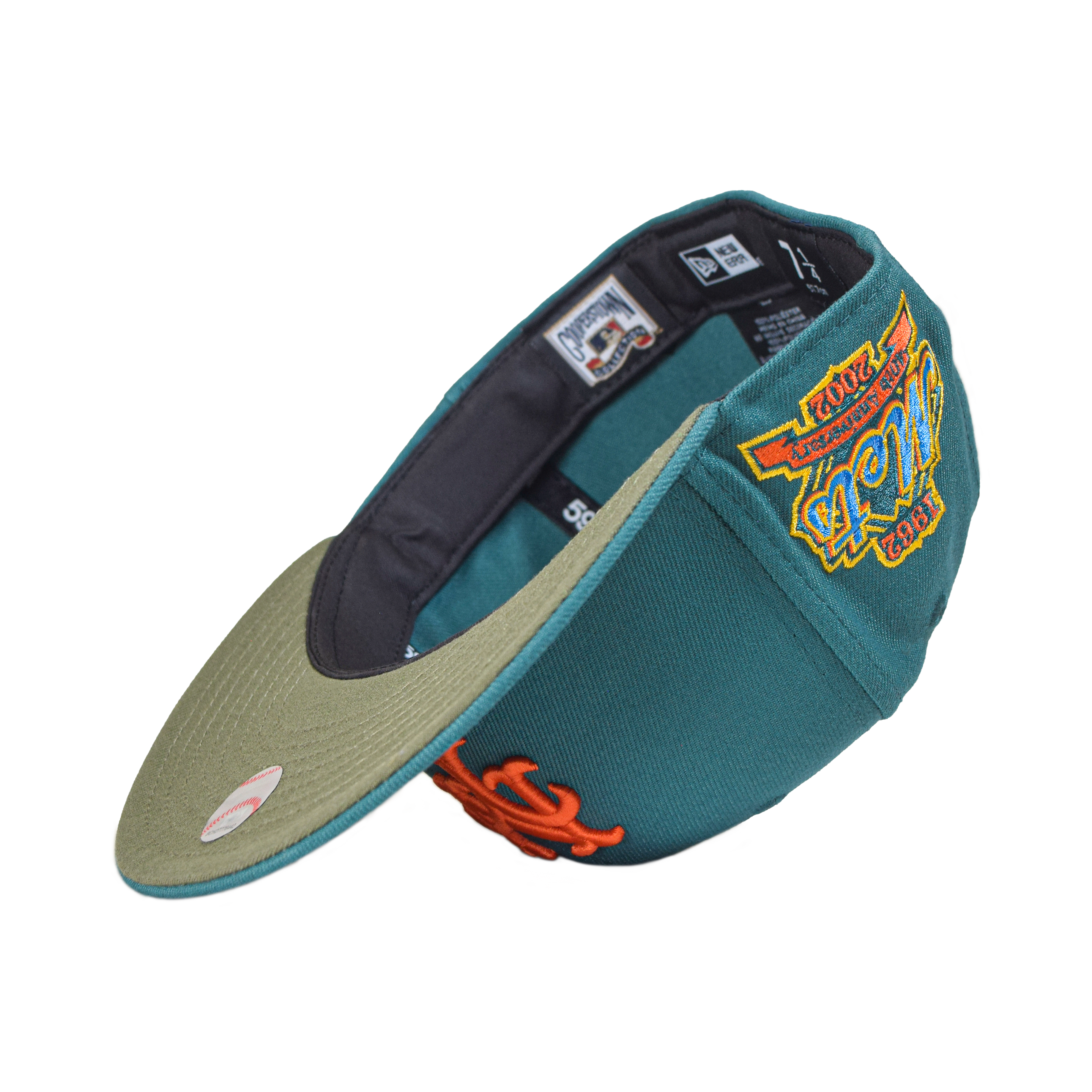 This New Era New Era New York Mets "Mystic Pines" 59FIFTY Fitted Hat was released by Capanova.The Mystic Pine collection features a pine green, olive green, blue and orange colorway. The fitted caps include a six panel construction, fabric squatchee button, embroidered eyelets and a flat brim. The front panel includes the New York Mets logo embroidery and a side patch on the right-wear side.