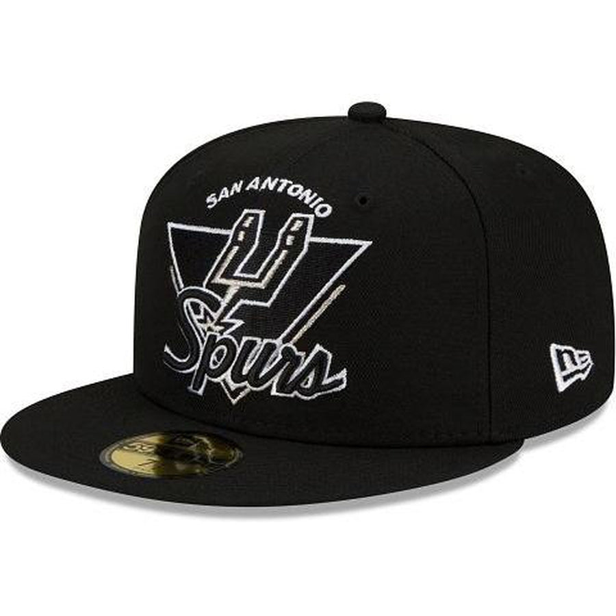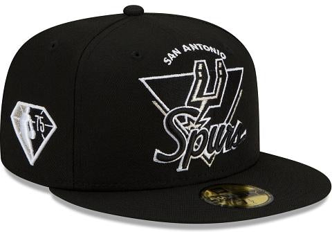 Fresh look for a fresh start. The San Antonio Spurs Tip Off 59FIFTY Fitted Cap features a custom Spurs mark inspired by logos and wordmarks embroidered at the front panels with the Official NBA 75th anniversary logo embroidered at the right-wear side. Additional details include a team logo at the rear with a gray undervisor.
