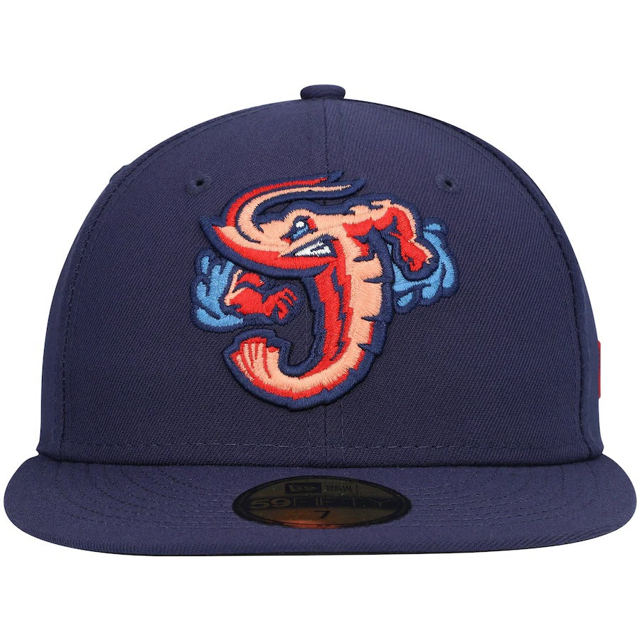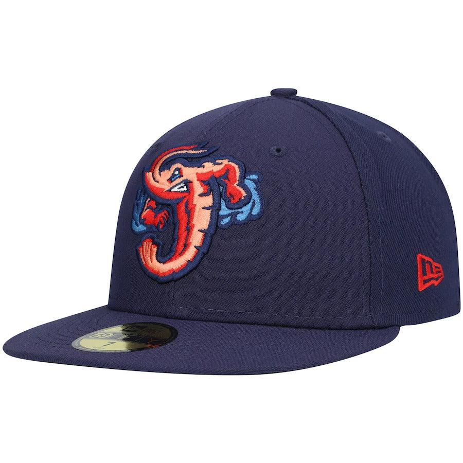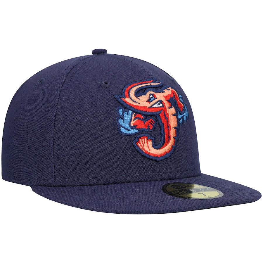 Wearing this New Era 59FIFTY hat on more than just game day allows your Jacksonville Jumbo Shrimp fandom to be seen all the time. A trendy high crown and fitted construction pair for a classic design. Bold Jacksonville Jumbo Shrimp embroidery completes this cap for an accessory that shows you're more than an average fan.
