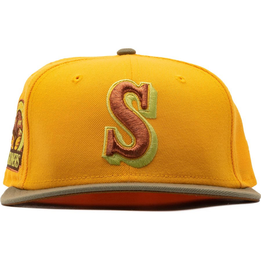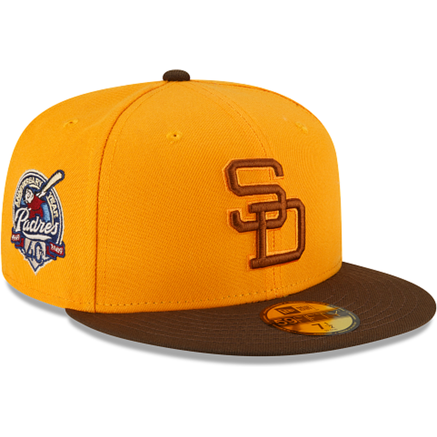 Browse a large collection of gold fitted hats! This collection include mostly New Era 59FIFTY fitted hats that have a gold tone crown. The gold crown fitteds can vary based on saturation. The gold crown fitteds have a light orange yellow color to it and usually includes other colors such as navy blue, burgundy, brown and more. Teams included in this collection comes mostly from the three major sports including the NBA, NFL and MLB. The most available gold fitted caps are shown first and as you navigate further down the hats are more than likely to be archived for record keeping purposes.