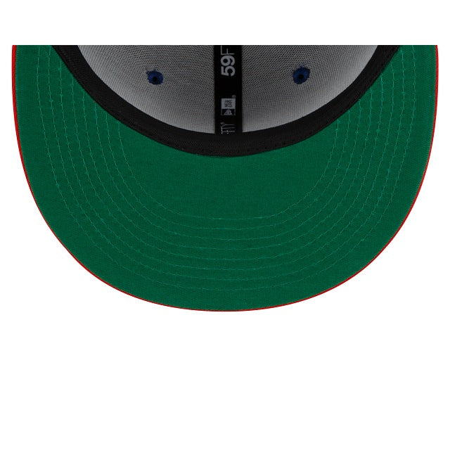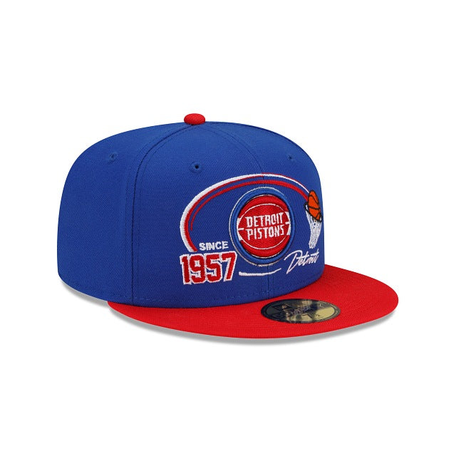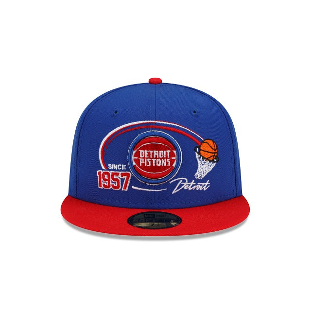 The Detroit Pistons Two-Tone Hoops 59FIFTY Fitted Cap features a team specific two-tone fabrication with a day of establishment graphic and Pistons logo at the front panels and the NBA logo at the rear. Additional details include a Kelly Green undervisor.
