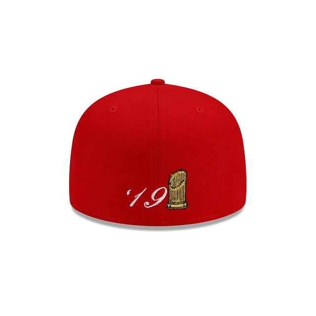 The Washington Nationals Call Out 59FIFTY Fitted Cap features an embroidered Nationals logo complimented by team inspired embroideries at the front panels with a World Series patch at the right-wear side and an additional team inspired graphic at the rear. Additional details include a Kelly Green undervisor.