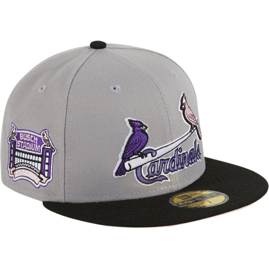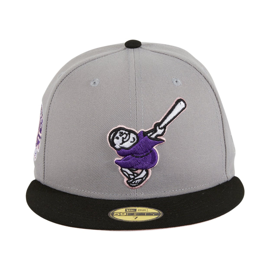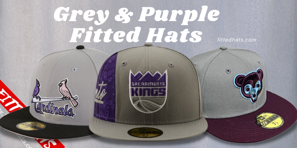 Browse a large selection of grey & purple New Era fitted hats. This collection of 59FIFTY fitted caps include caps that have light grey and various shades of purple colorways. The hats may include various side patch embroideries and different color undervisors but they are all light grey and purple theme.