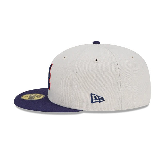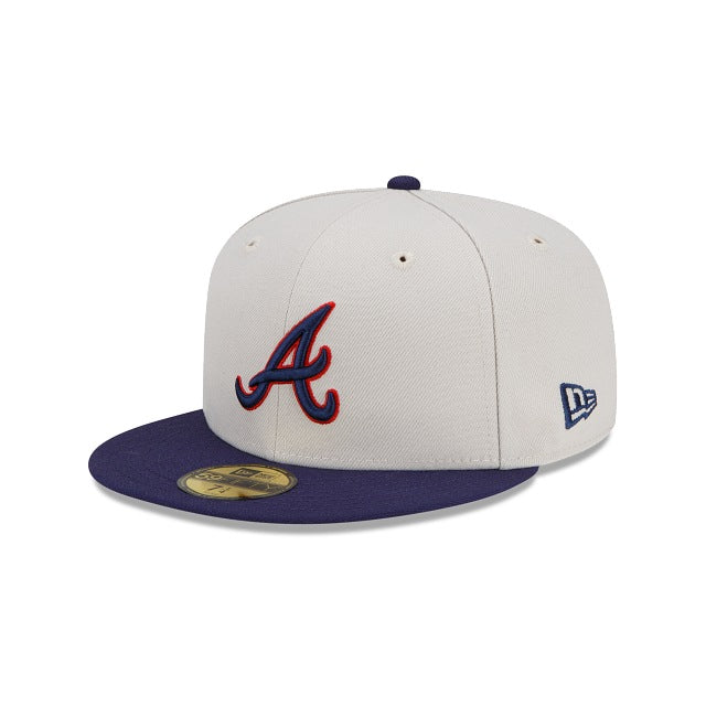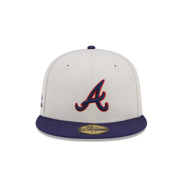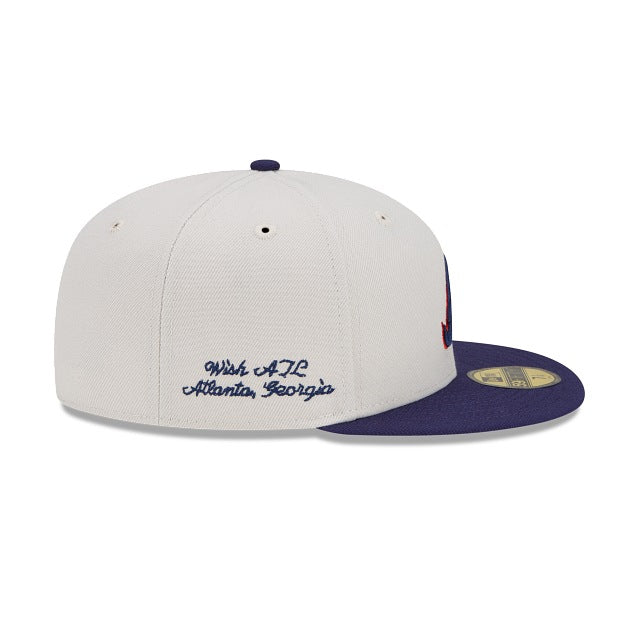 The WISH X Atlanta Braves Gray 59FIFTY Fitted Cap features a two tone fabrication with an embroidered Braves logo at the front panels and a WISH X Atlanta Braves embroidery at the right-wear side. Additional details include the MLB Batterman logo at the rear and a gray undervisor.