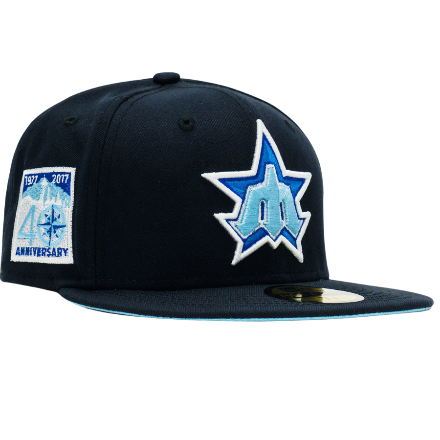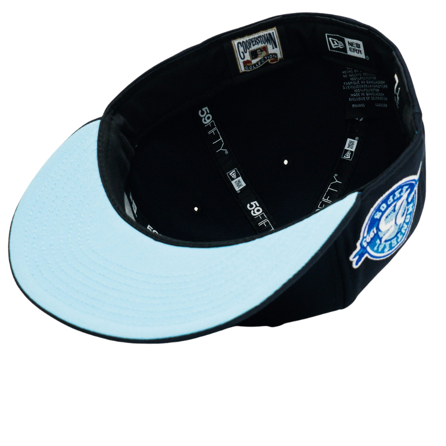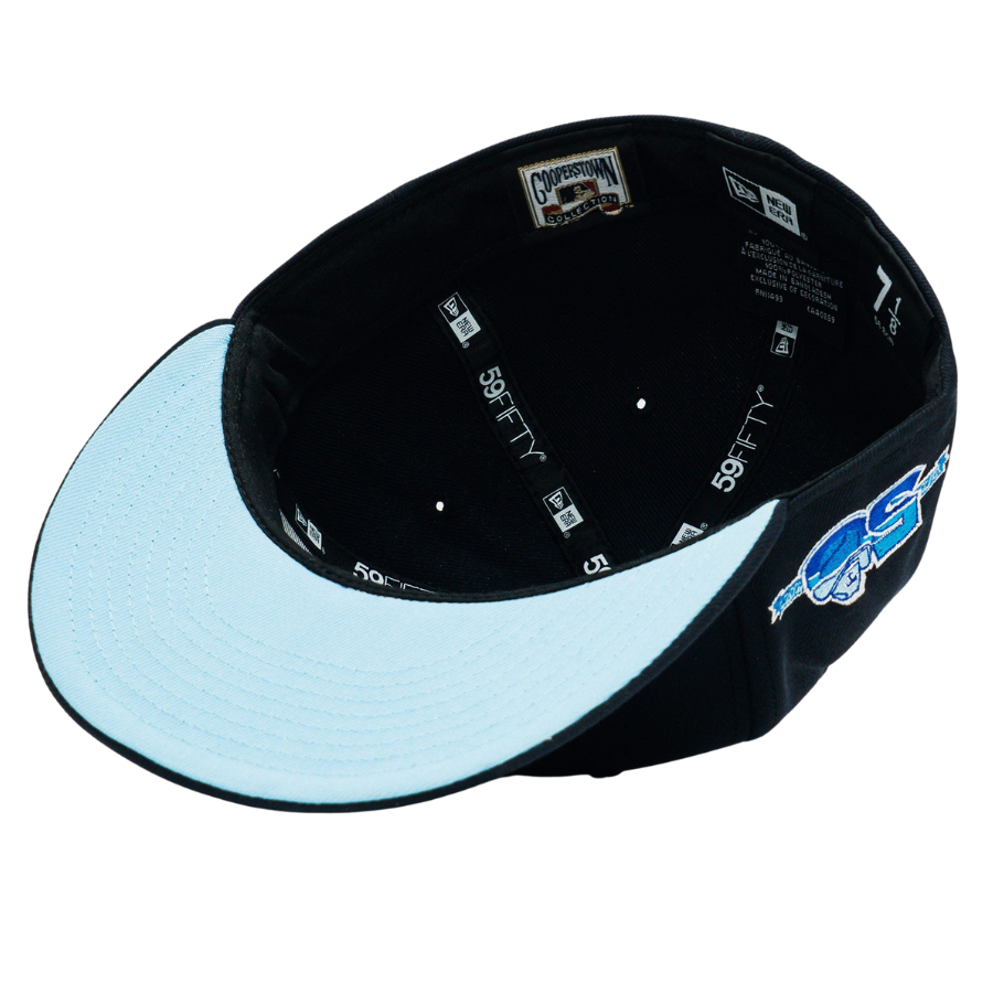 Icy Bottom fitted hats are fitteds with baby blue and/or sky blue undervisors. These hats are also known as "Sky Bottom" or "Icy UV" fitted hats. This collection of New Era 59FIFTY fitted hats are sold by many stores and online shops such as Fanatics, FansEdge, Lids, New Era Cap Company and other sites. Marketplaces like Amazon, eBay and Grailed also have resellers that sell these color undervisor fitted hats. The collection include teams from the MLB, NFL, NBA, MiLB, NCAA and other unique fitted hats.