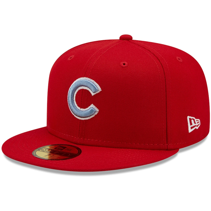 New Era Chicago Cubs Scarlet Red 100 Years at Wrigley Field Blue Undervisor Team 59FIFTY Fitted Hat