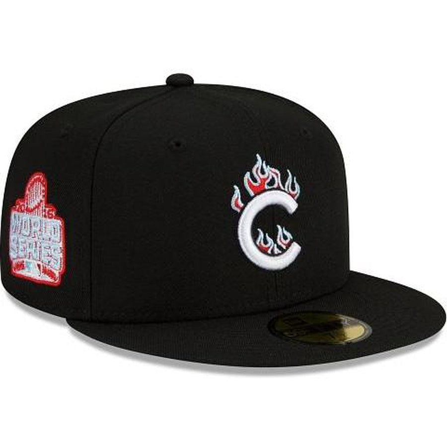 Light it up with the Chicago Cubs Team Fire 59FIFTY Fitted Cap featuring an embroidered Cubs logo with flame detailing at the front panels with a World Series patch at the right-wear side and a light-blue undervisor.