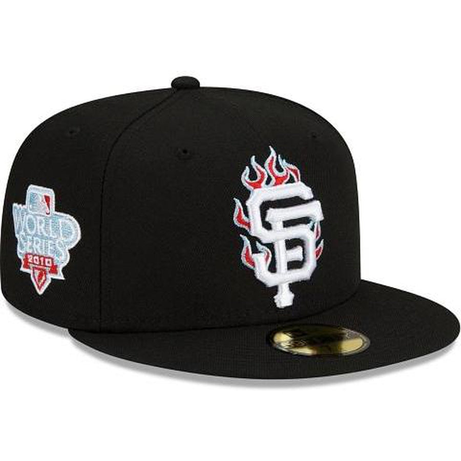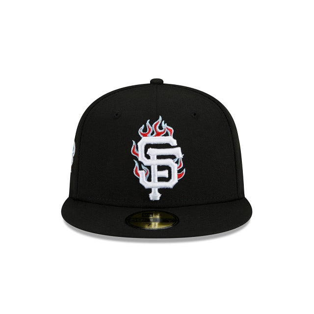 Light it up with the San Francisco Giants Team Fire 59FIFTY Fitted Cap featuring an embroidered Giants logo with flame detailing at the front panels with a World Series patch at the right-wear side and a light-blue undervisor.