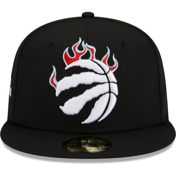 Light it up with the Toronto Raptors Team Fire 59FIFTY Fitted Cap featuring an embroidered Raptors logo with flame detailing at the front panels with a side patch embroidery at the right-wear side and a light-blue undervisor.