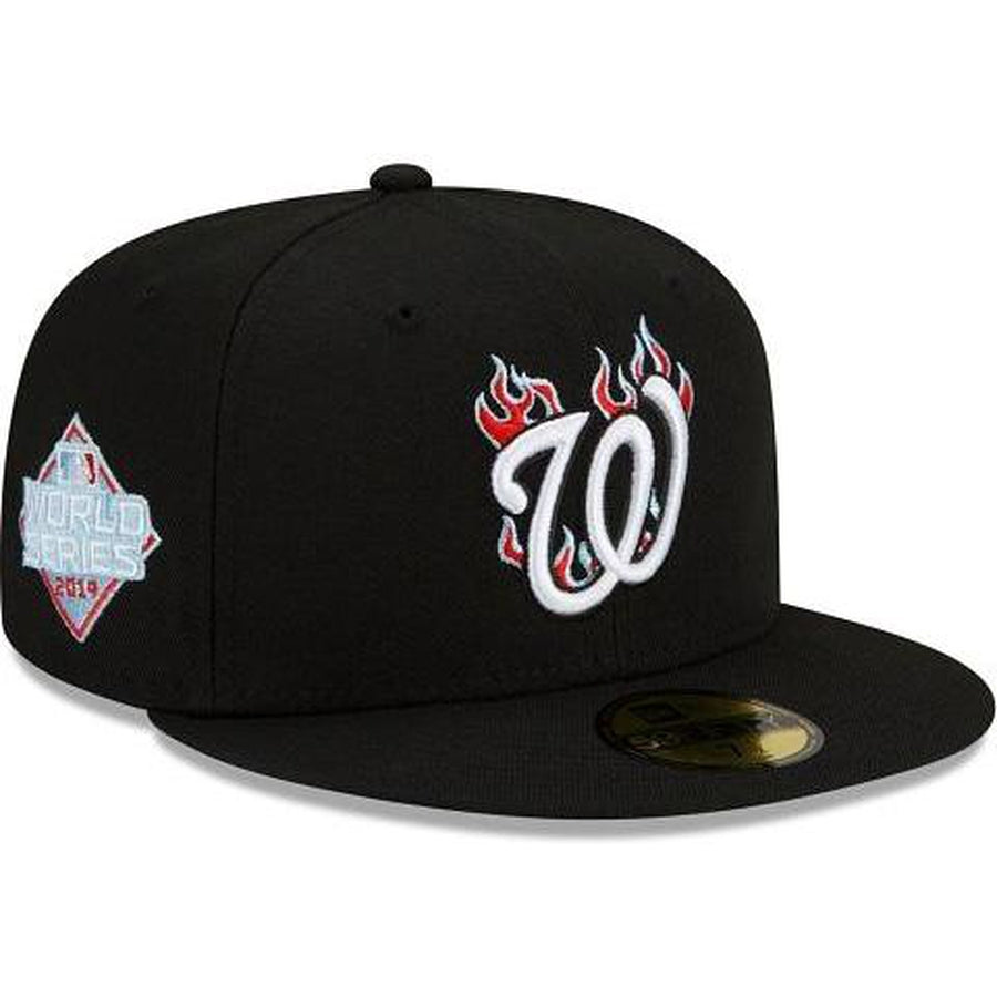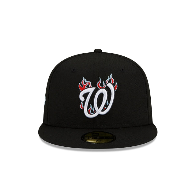 Light it up with the Washington Nationals Team Fire 59FIFTY Fitted Cap featuring an embroidered Nationals logo with flame detailing at the front panels with a World Series patch at the right-wear side and a light-blue undervisor.