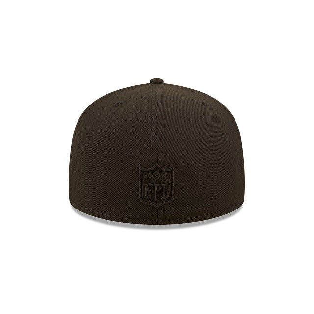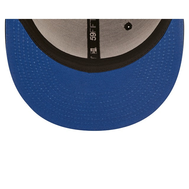 The Indianapolis Colts Logo Feature 59FIFTY Fitted Cap has an embroidered blackout Colts logo overlayed with a team colored feature logo at the front panels, and a blackout NFL Shield at the rear. Additional details include a blue undervisor.