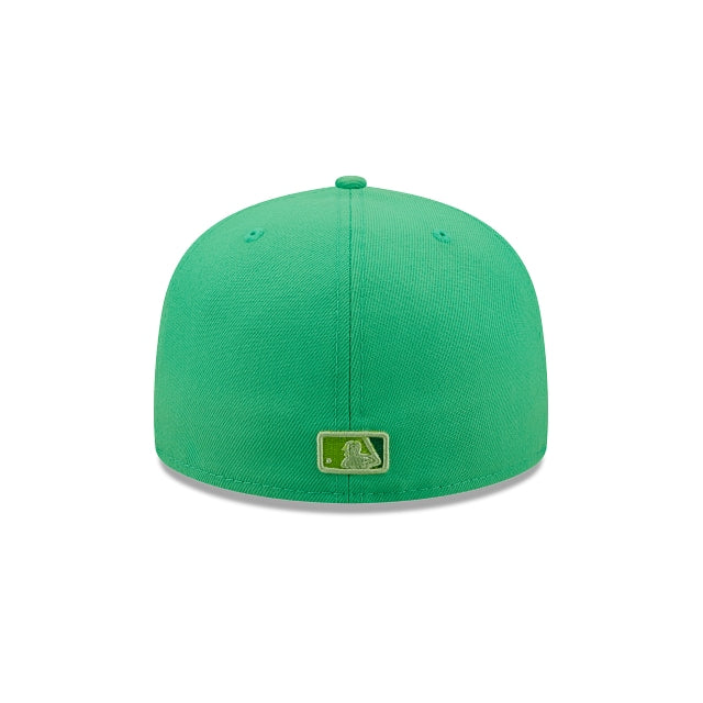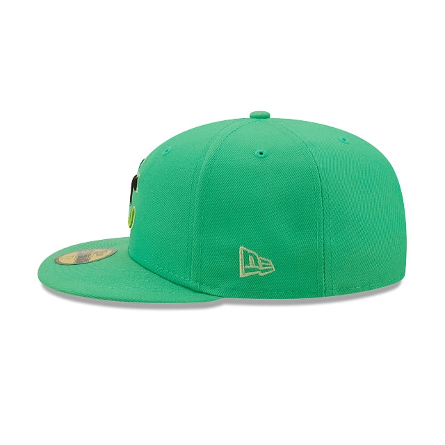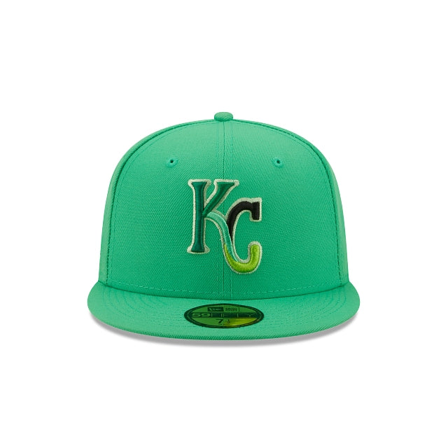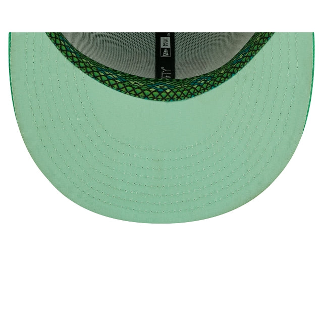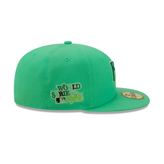 The Kansas City Royals Snakeskin 59FIFTY Fitted Cap features an embroidered Royals multi-colored logo at the front panels, a 1985 World Series patch at the right-wear side, and a matching MLB Batterman logo at the rear. Additional details include a snakeskin inspired inner sweatband and green undervisor.