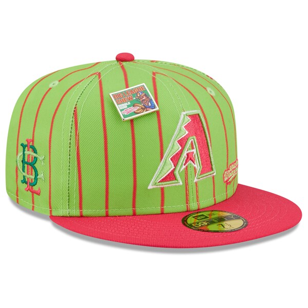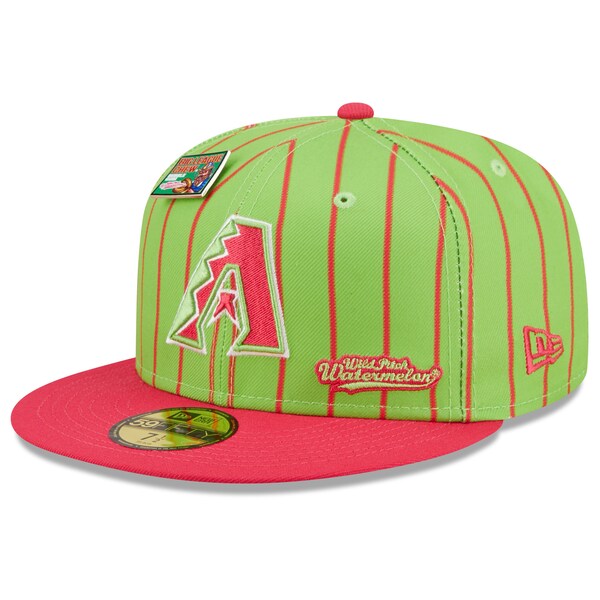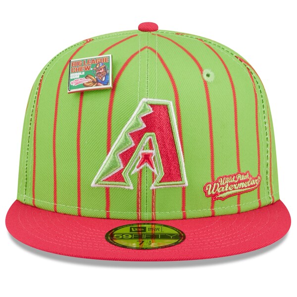 The MLB and Big League Chew have teamed up to bring Arizona Diamondbacks fans this one of a kind, Wild Pitch Watermelon Flavor Pack 59FIFTY Fitted Hat. Featuring a high crown and flat bill, this New Era hat will take your game day look to the next level. Its classic and fun graphics combine your Arizona Diamondbacks and your all-time favorite Big League Chew flavor, making it unlike anything else in your collection.