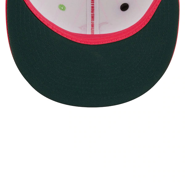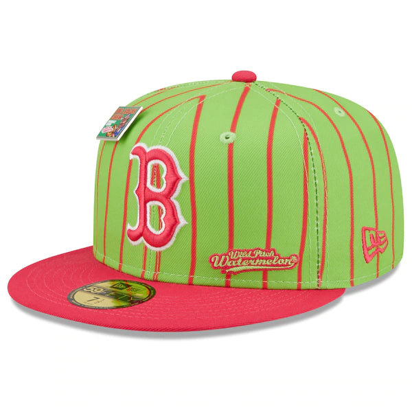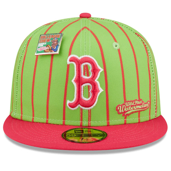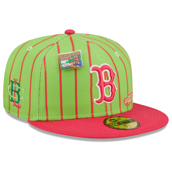 The MLB and Big League Chew have teamed up to bring Boston Red Sox fans this one of a kind, Wild Pitch Watermelon Flavor Pack 59FIFTY Fitted Hat. Featuring a high crown and flat bill, this New Era hat will take your game day look to the next level. Its classic and fun graphics combine your Boston Red Sox and your all-time favorite Big League Chew flavor, making it unlike anything else in your collection.