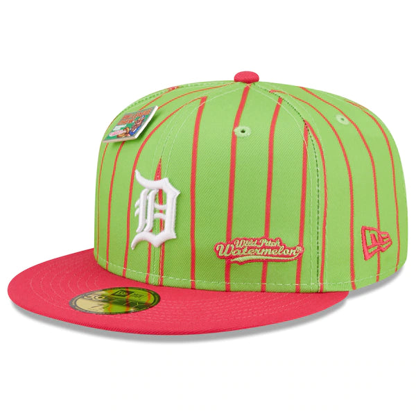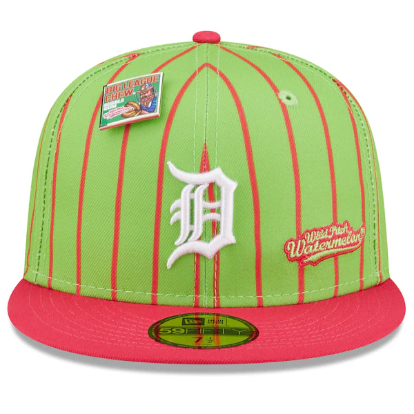 The MLB and Big League Chew have teamed up to bring Detroit Tigers fans this one of a kind, Wild Pitch Watermelon Flavor Pack 59FIFTY Fitted Hat. Featuring a high crown and flat bill, this New Era hat will take your game day look to the next level. Its classic and fun graphics combine your Detroit Tigers and your all-time favorite Big League Chew flavor, making it unlike anything else in your collection.