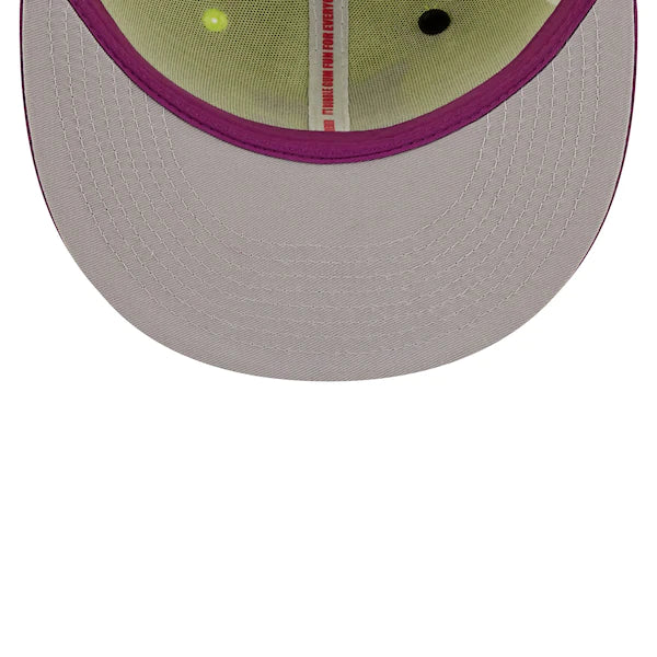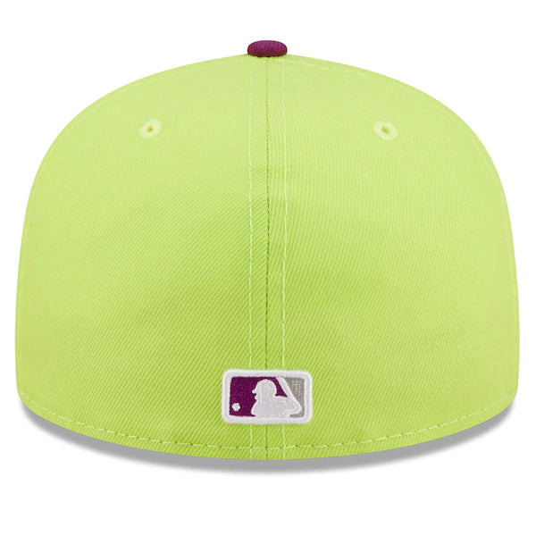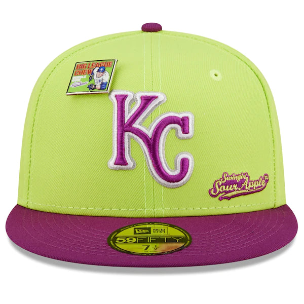 The MLB and Big League Chew have teamed up to bring Kansas City Royals fans this one of a kind, Swingin' Sour Apple Flavor Pack 59FIFTY Fitted Hat. Featuring a high crown and flat bill, this New Era hat will take your game day look to the next level. Its classic and fun graphics combine your Kansas City Royals and your all-time favorite Big League Chew flavor, making it unlike anything else in your collection.